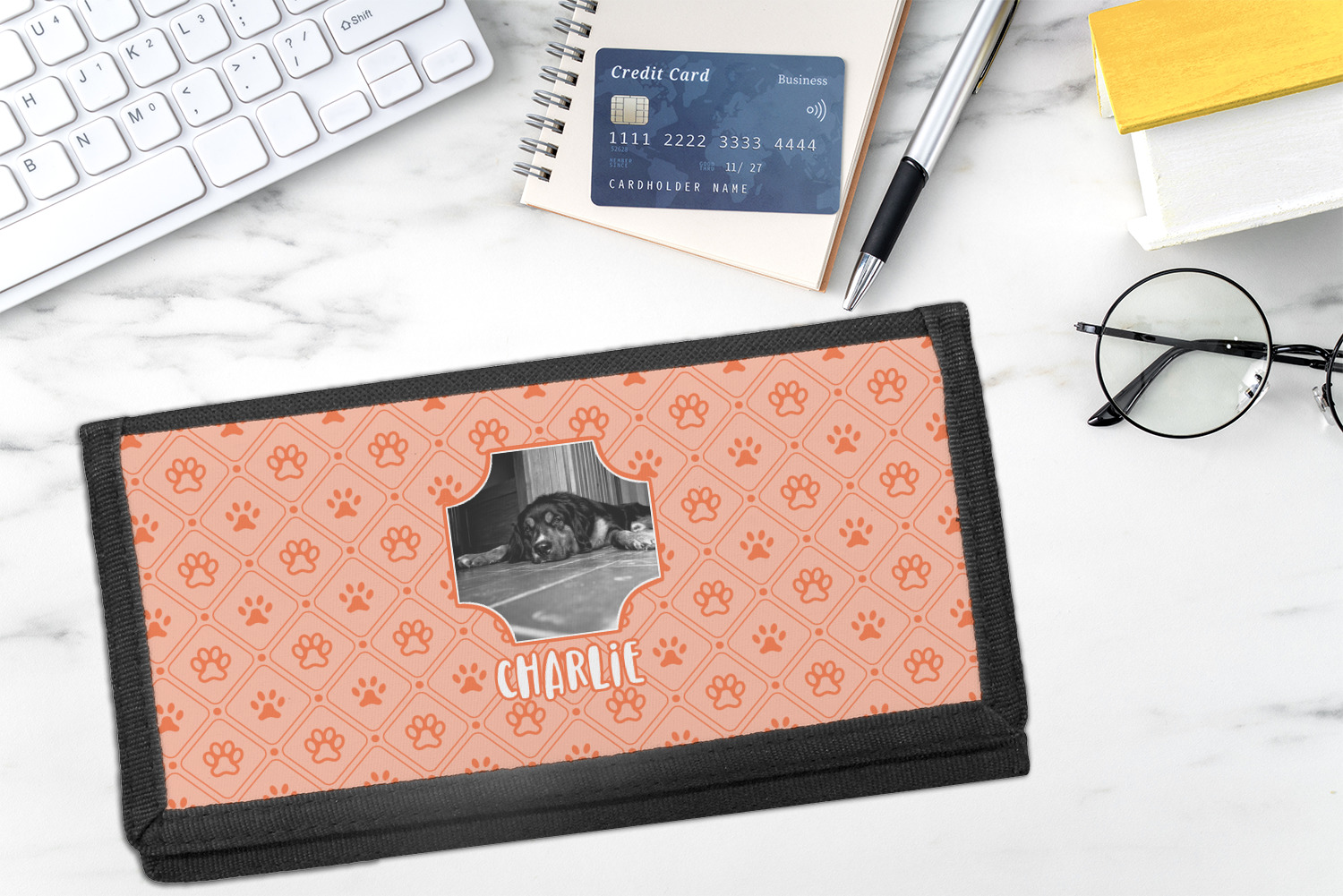 The checkbook cover is made of a durable canvas and the front flap is decorated with a vibrant design of your choosing. With 4 slots for credit cards or IDs, and 2 compartments for your checkbook register, cash, receipts, business cards, and more; this checkbook cover could easily double as a wallet.