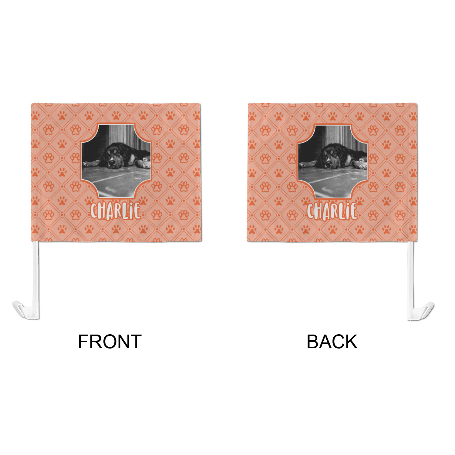 Our personalized flags are made from a durable, yet lightweight cloth that will proudly bear your logo or design of choice, while withstanding the outside elements. We have two size options - 8" x 11" and 11" x 15". Both come with a flag pole which includes a clip that secures the pole to the side window, whether it is rolled up or down. The flags are printed on both sides to display your design from all directions.