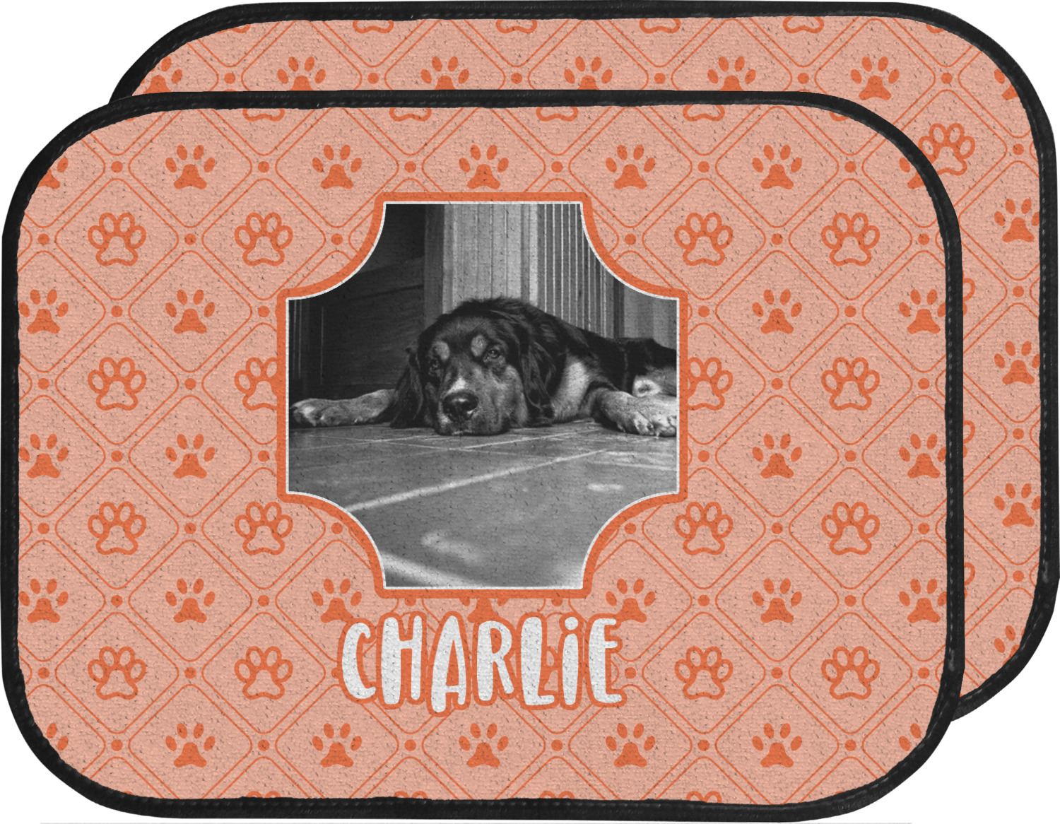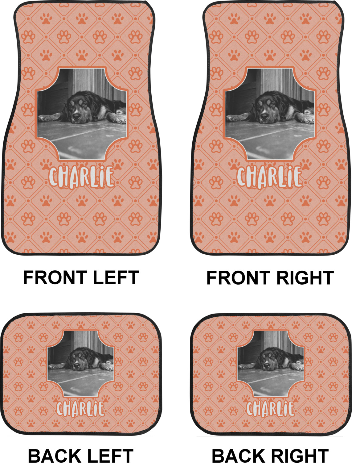We craft our auto floor mats mats from polyester, apply a black finish to the edges, and lined at the bottom to prevent slippage. These mats protect your floors from grass, mud, and any accidental spills. We display your personalized design on the front face of each mat. The sizes of these car floor liners are standardized to provide a versatile fit for all vehicles. The front rows car mats measure at 17 by 26.5 inches, while the back rows measure at 17 by 13 inches. We sell three packages of car floor mats. You can purchase a pair of front row car mats, a pair of back row car mats, or a set of front row and back row car mats. To make an informed purchase, we recommend measuring the surface area of your car floors.