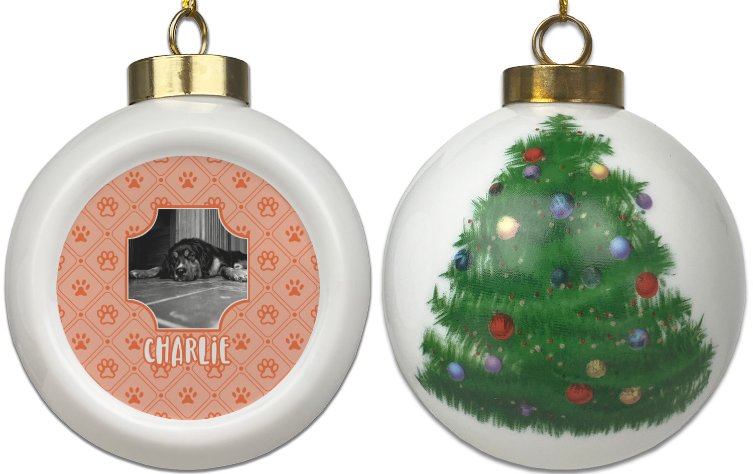 Our Christmas ornaments are a unique ceramic ball shape with a twist as it has a flat face to display your custom design! Select from one of our two design types - Christmas Tree or Poinsettia Garland - to adorn the curved back of your personal design. Each ornament measures 3H x 2.5W x 2D accompanied with a gold string accent for finishing touches to hang on your beautiful Christmas tree!