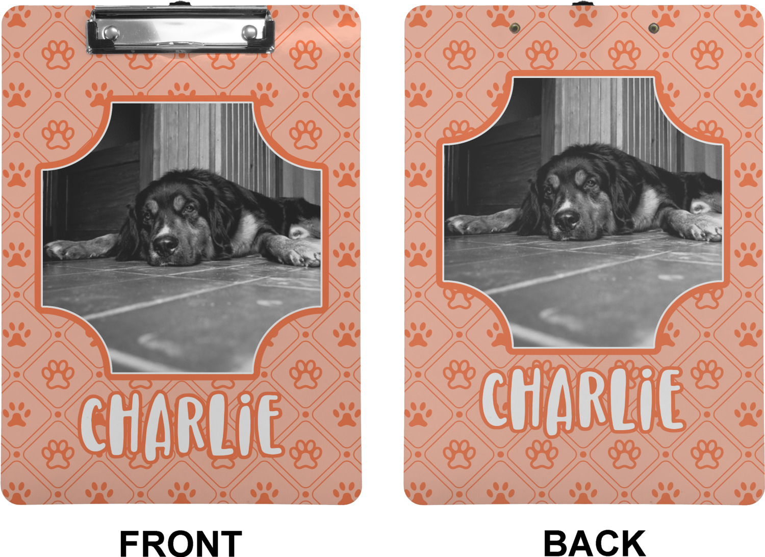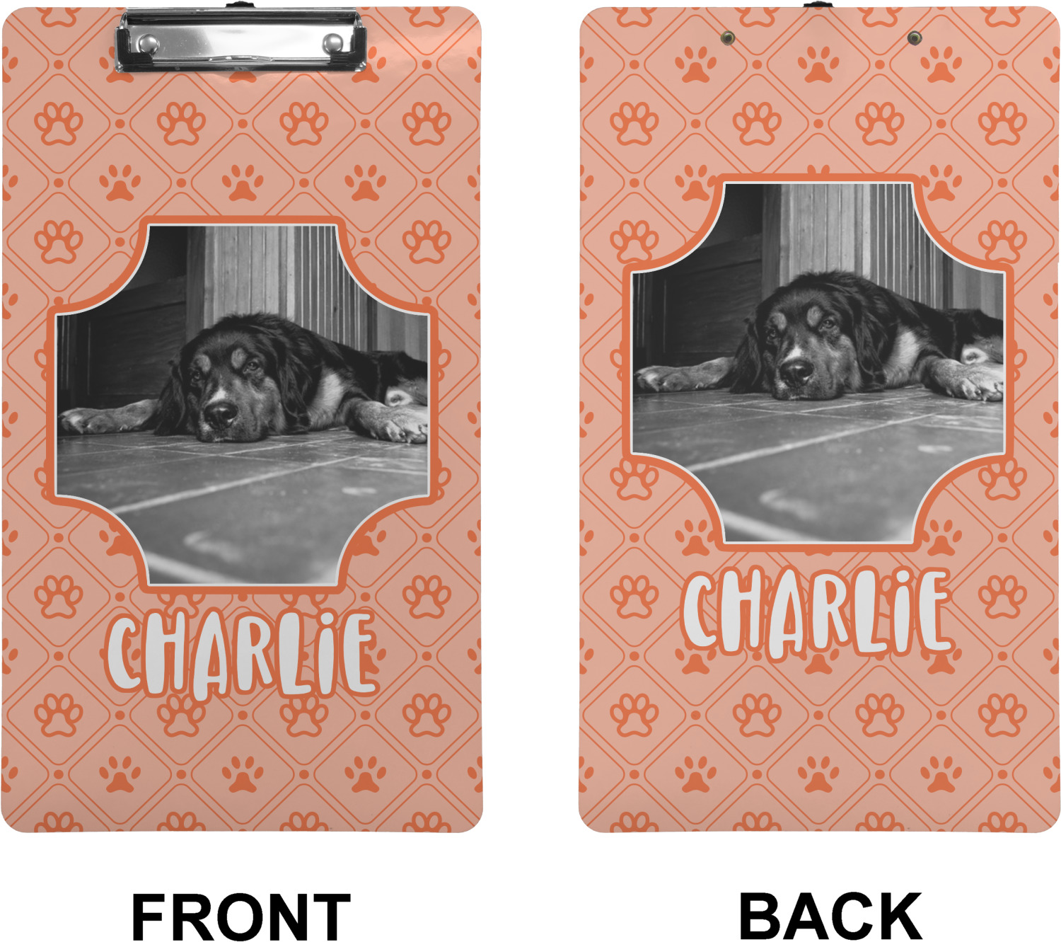 These custom clipboards are made from a strong hardboard and are coated with a glossy finish that accentuates the colors of your design. Alongside a retractable hook at its top, these decorative clipboards also feature sturdy clips to secure several sheets of paper. We sell these clipboards in two separate sizes. Our letter size measures at 12.5" L x 9" W, while our legal clipboard is approximately 15.5" L x 9" W. On both models, your personalization is printed on both sides of this clipboard and can be customized individually.