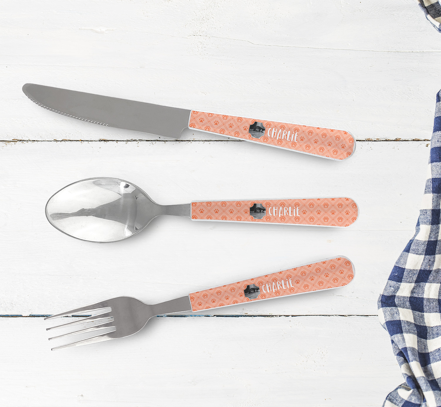 One of those items we all use on a daily basis and never give it much thought - cutlery. Having your own customized set of cutlery adds that special touch. A great addition to our custom plates and drinking pint glasses, this flatware set can be made in the same patterns to match.