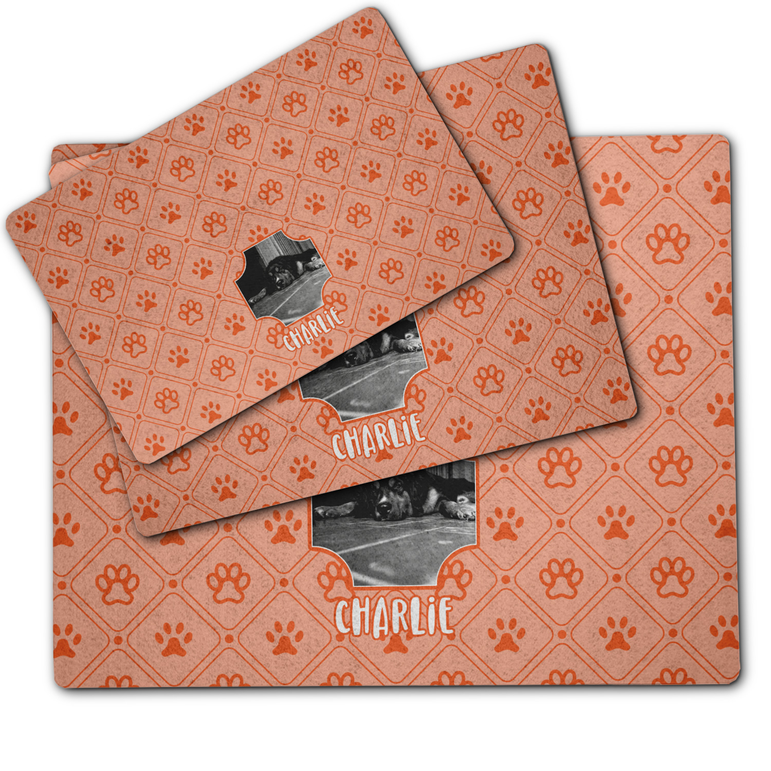 This dog bowl mat, fabricated from polyester, proudly displays your customized design on its top, while its bottom includes a non-slip rubber. This feature allows it to remain firmly in place, even when your dog spills his/her water. With 3 sizes available (18" x 12", 24" x 18", 30" x 24"), the pet food mat has ample space for both a food and water bowl for any sized dogs. Though specified for dogs' use, these mats are also a splendid option for cats.