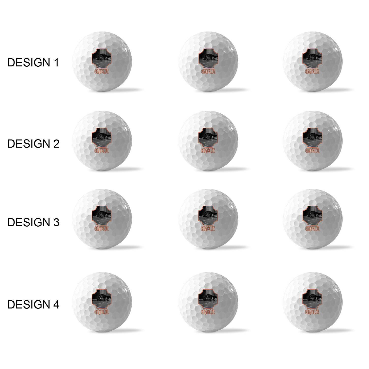 Printed in a 7/8" circle on each ball, you can customize these with our design studio or use your own designs. For a set of 3 you can design each one individually, for a set of 12 you will be able to use 4 unique designs and will receive 3 balls with each design.