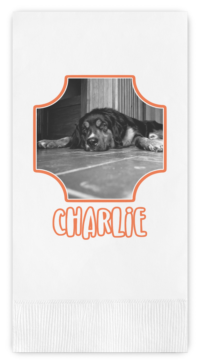 This design is a bright peach with accents of orange. In the middle, you can upload your favorite picture of your pet! It's a breeze with our design center. Underneath their picture, put their name or a fun saying. The background is filled with a fun pattern of pawprints and bones. This will be the perfect design for a sweet puppy.