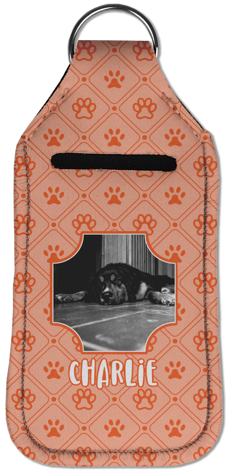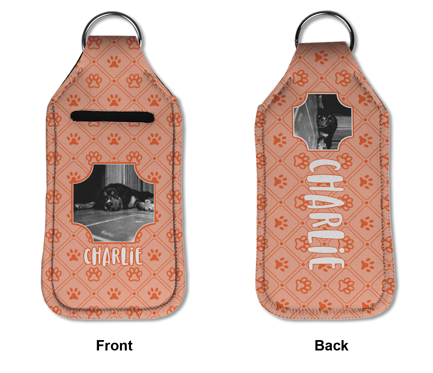 Each hand sanitizer holder comes with its own empty travel-sized, refillable hand sanitizer sure to fit snug in your customized sanitizer case! Our hand sanitizer cases are a durable, yet soft neoprene material sure to last any daily activities or travel agenda. Customize and personalize a hand sanitizer bottle holder with one of our two sizes - small (4.25" x 2.25") or large (5.5" x 2.5"). Each travel sanitizer holder comes with a keyring for attachment on bags, keys, or more!