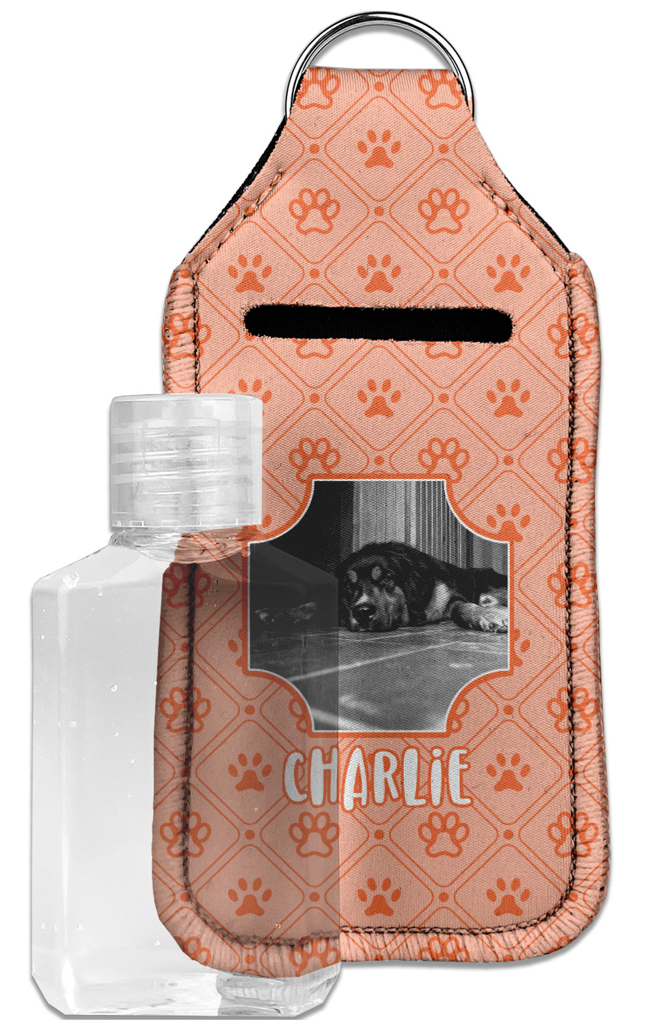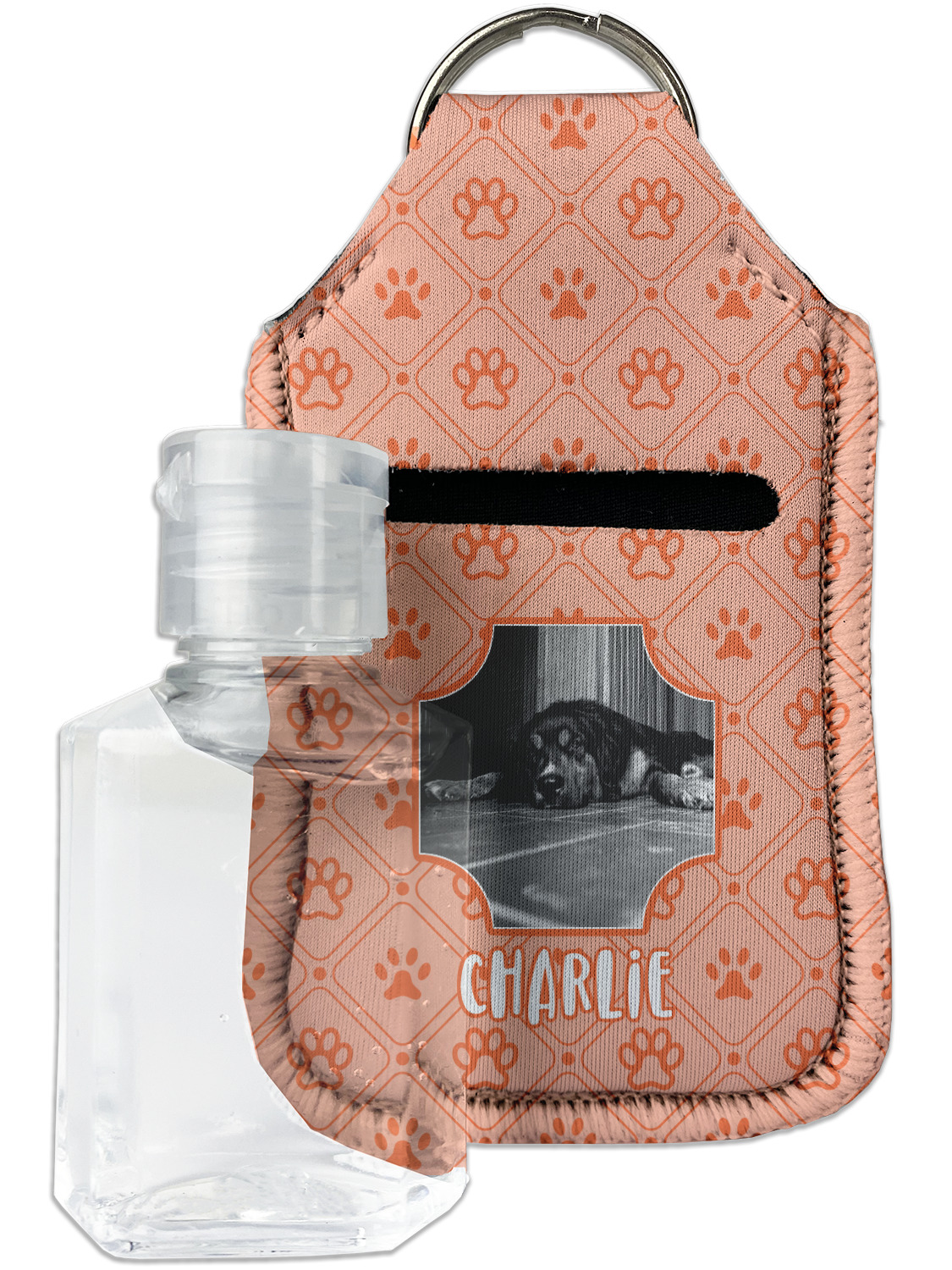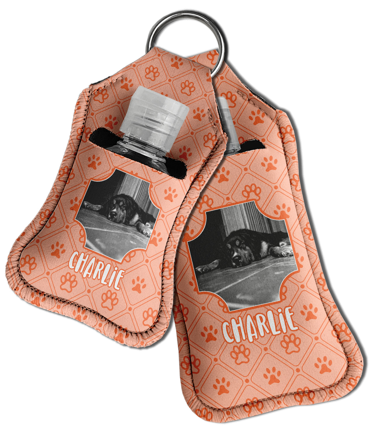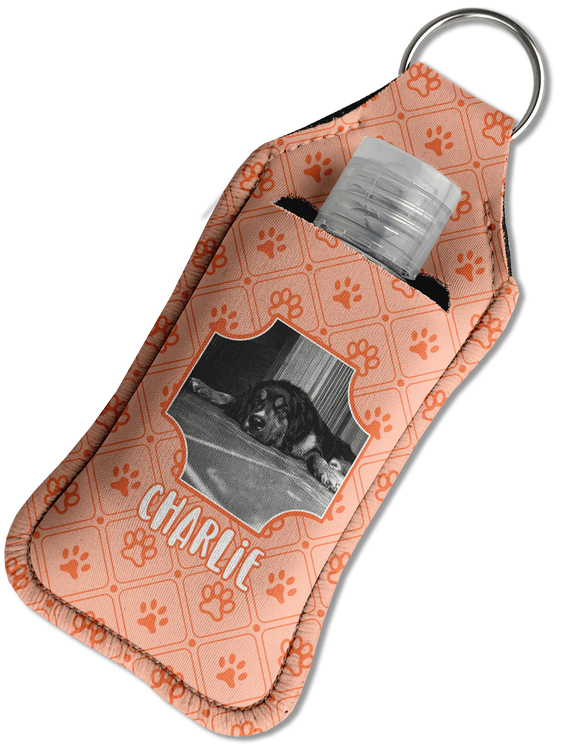 Each hand sanitizer holder comes with its own empty travel-sized, refillable hand sanitizer sure to fit snug in your customized sanitizer case! Our hand sanitizer cases are a durable, yet soft neoprene material sure to last any daily activities or travel agenda. Customize and personalize a hand sanitizer bottle holder with one of our two sizes - small (4.25" x 2.25") or large (5.5" x 2.5"). Each travel sanitizer holder comes with a keyring for attachment on bags, keys, or more!
