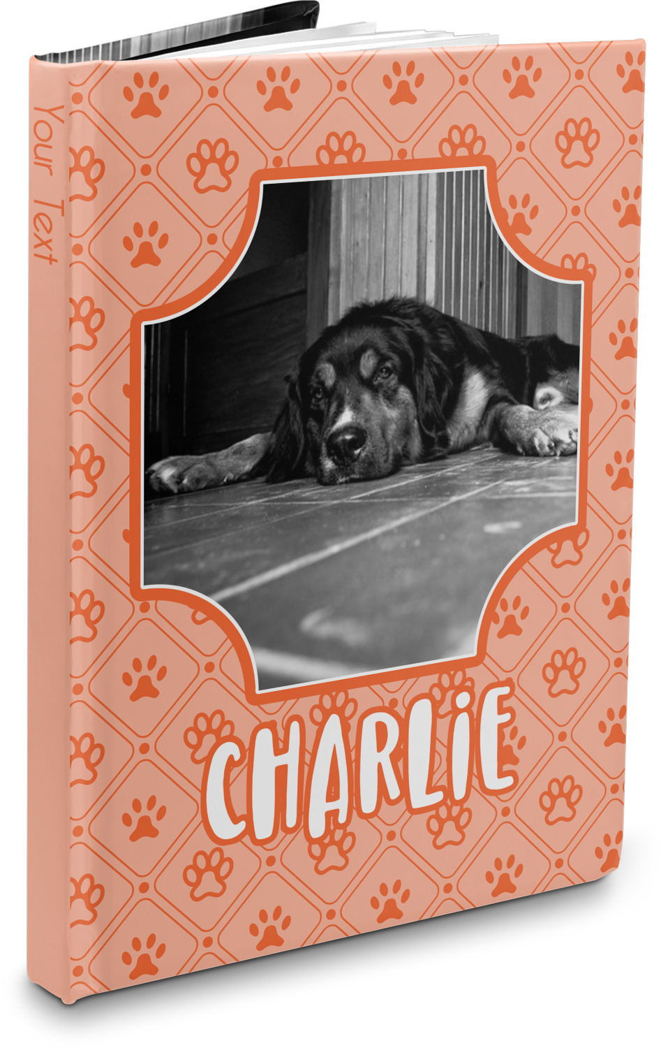 The hardcover of this personalized journal is covered with a smooth, matte, laminate coating. The unique laminate of the covers gives the hardcover notebook a smooth, sleek feel. Filled with 75, lined, white pages, this hardbound notebook has enough room for your reminders and notes. For your convenience, the pages have been perforated, which guarantees an easy tear and removal. Your customization is printed across the entire cover of the book, while the interior is black in color.