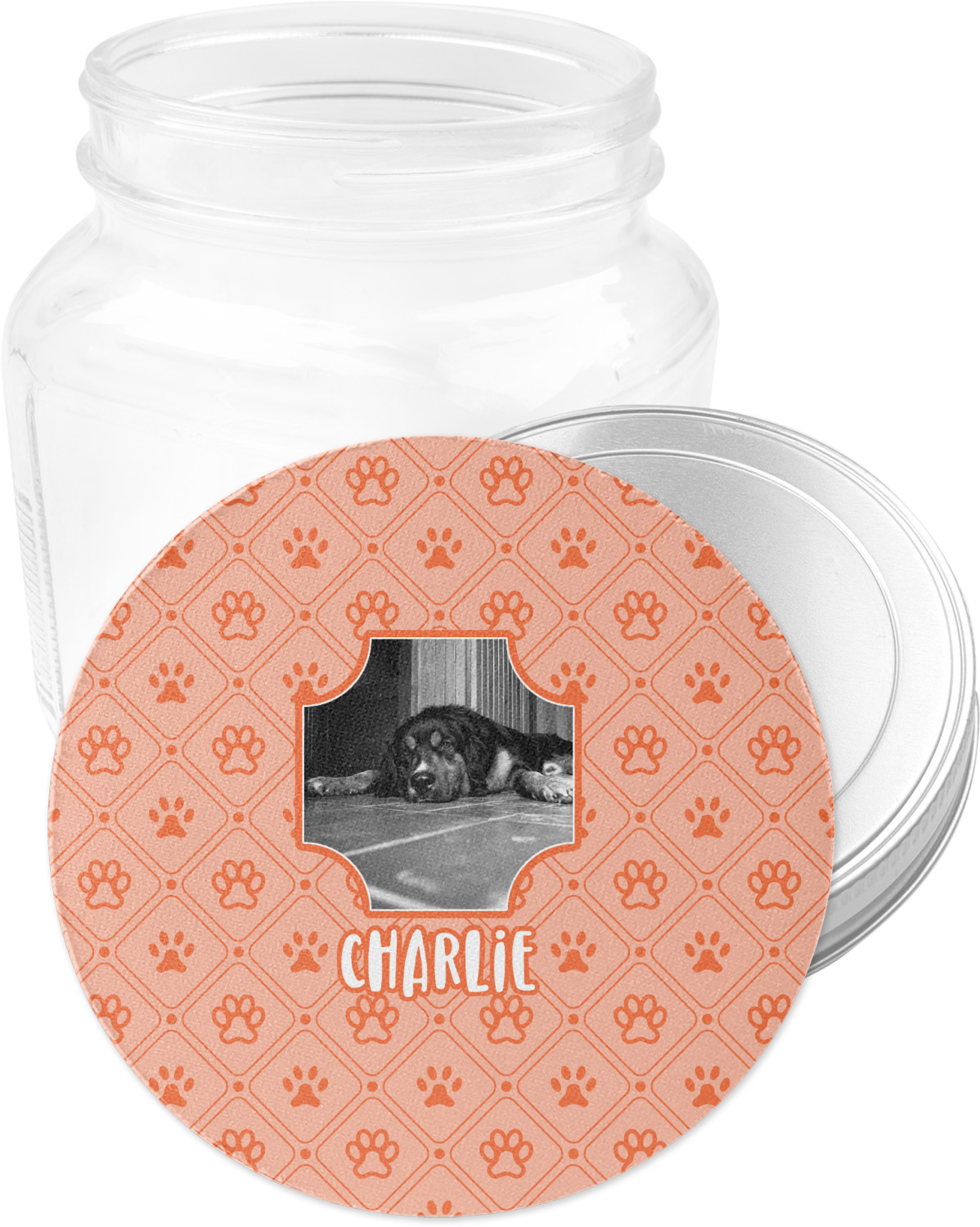 This design is a bright peach with accents of orange. In the middle, you can upload your favorite picture of your pet! It's a breeze with our design center. Underneath their picture, put their name or a fun saying. The background is filled with a fun pattern of pawprints and bones. This will be the perfect design for a sweet puppy.