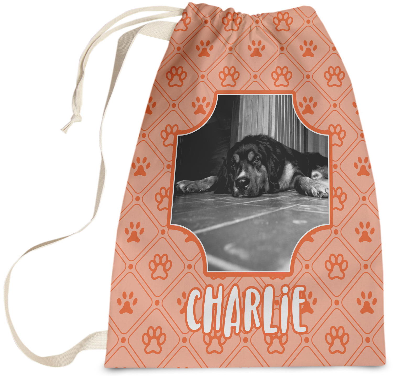 Carry your laundry in style with these customized laundry bags. Available in two sizes, featuring a natural colored woven strap and a cinch cord, these bags hold a lot of clothes or anything else you want to fit in them.