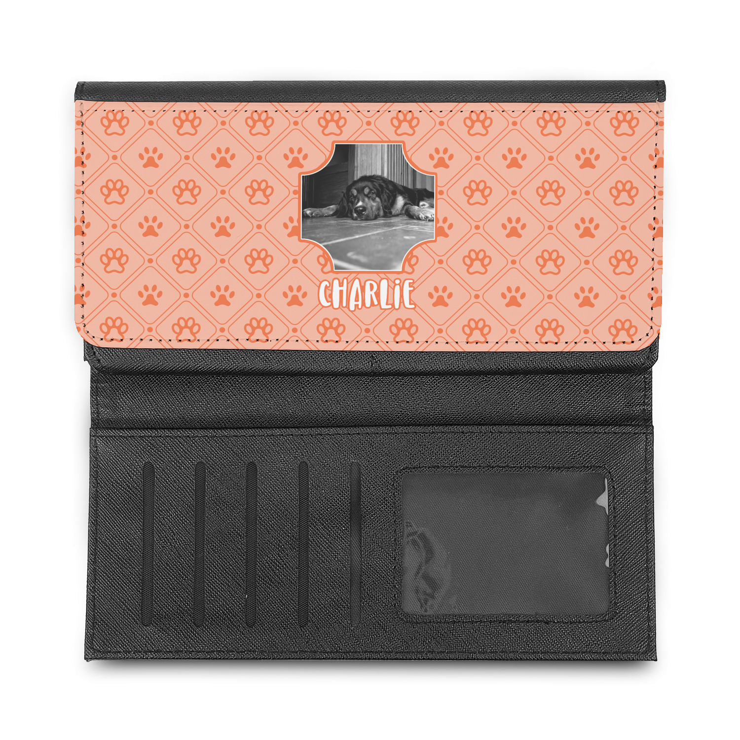 These beautiful wallets are a trifold design. The wallet is made of textured leatherette. The front section has a secure magnetic snap. The front flap is personalized with the artwork of your choice to make this wallet uniquely yours.