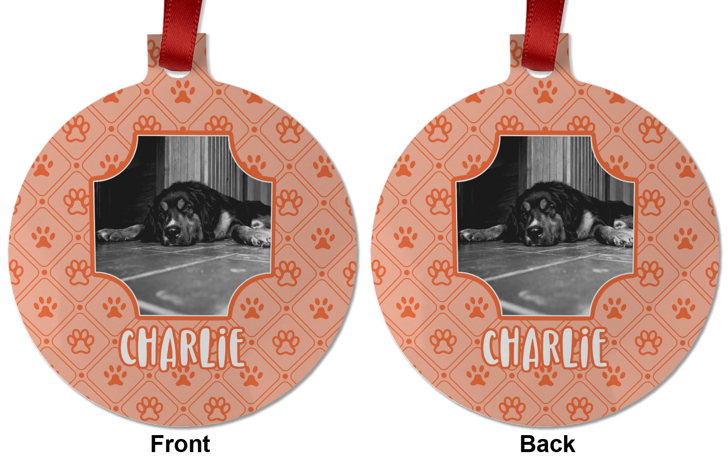 We offer double-sided printing on our personalized metal ornaments all with a gloss finish to make sure your Christmas tree continues to illuminate through the night. We offer 4 different metal ornament shapes to help express yourself or loved ones! Choose from our ball, paw print, star, or frame metal ornaments. Each metal ornament is an aluminum material sure to last you as many years as needed to share the joy and warmth of the holiday. We pair each customizable ornament with a red ribbon to tie your ornament and hang on your Christmas tree!