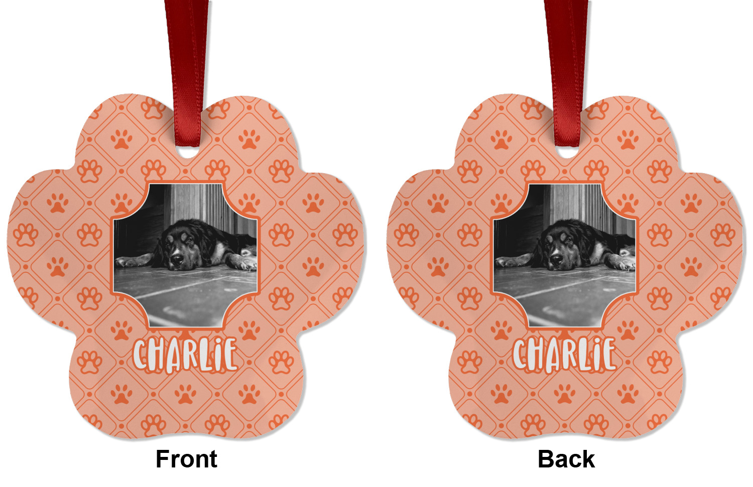 We offer double-sided printing on our personalized metal ornaments all with a gloss finish to make sure your Christmas tree continues to illuminate through the night. We offer 4 different metal ornament shapes to help express yourself or loved ones! Choose from our ball, paw print, star, or frame metal ornaments. Each metal ornament is an aluminum material sure to last you as many years as needed to share the joy and warmth of the holiday. We pair each customizable ornament with a red ribbon to tie your ornament and hang on your Christmas tree!