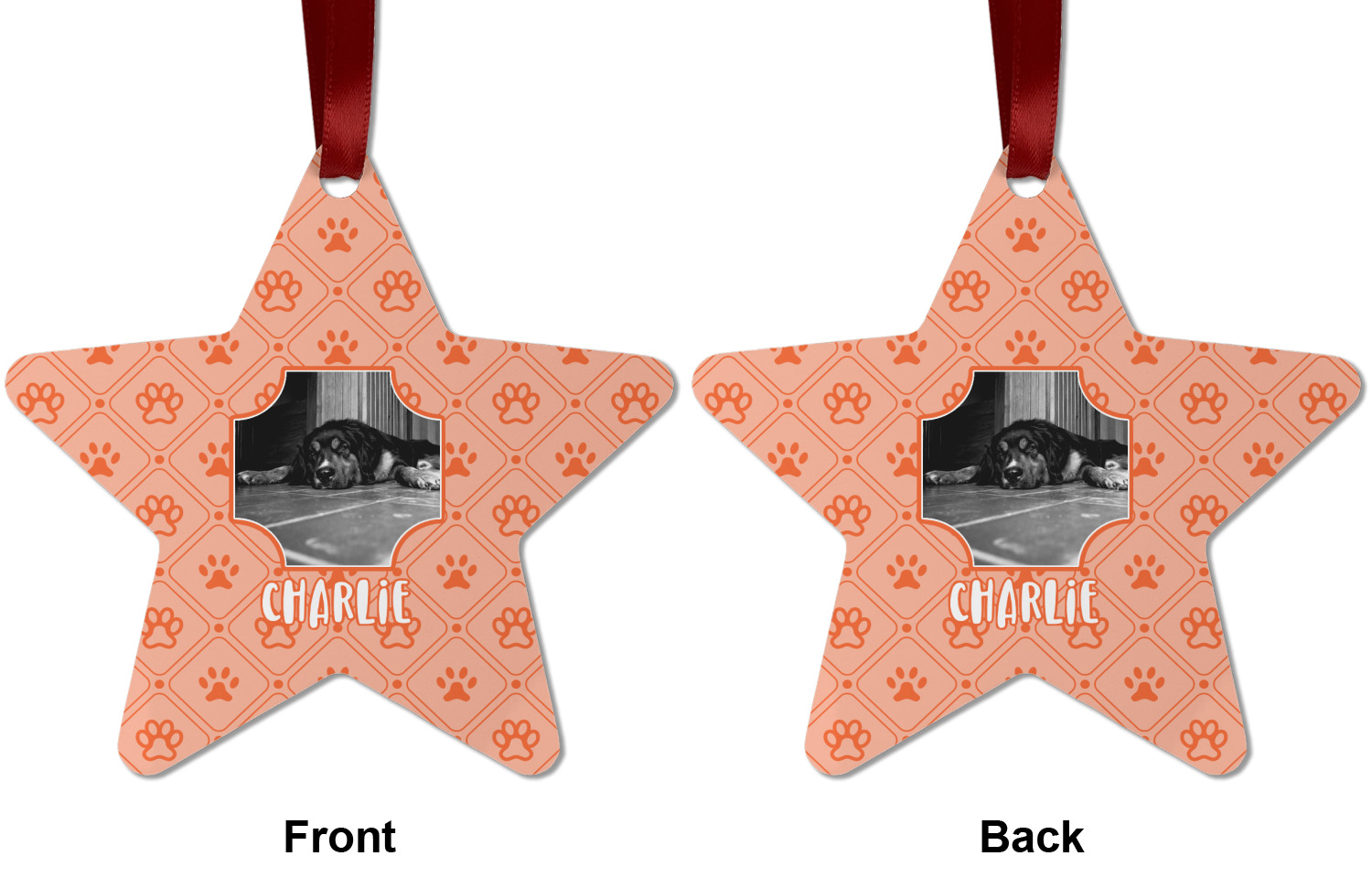 We offer double-sided printing on our personalized metal ornaments all with a gloss finish to make sure your Christmas tree continues to illuminate through the night. We offer 4 different metal ornament shapes to help express yourself or loved ones! Choose from our ball, paw print, star, or frame metal ornaments. Each metal ornament is an aluminum material sure to last you as many years as needed to share the joy and warmth of the holiday. We pair each customizable ornament with a red ribbon to tie your ornament and hang on your Christmas tree!