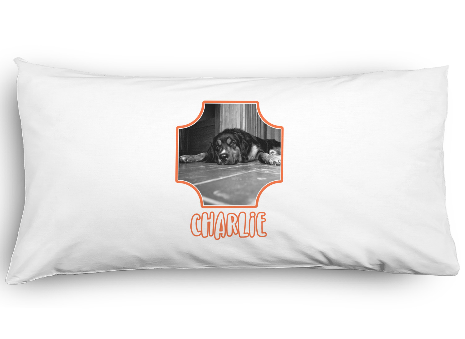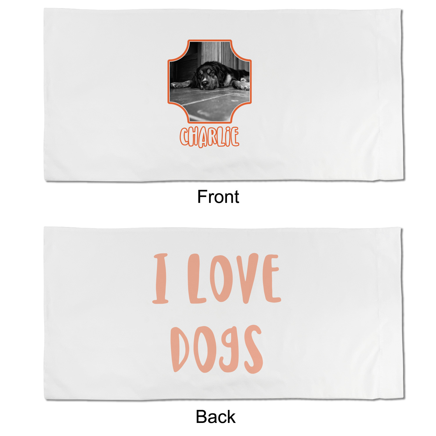 This design is a bright peach with accents of orange. In the middle, you can upload your favorite picture of your pet! It's a breeze with our design center. Underneath their picture, put their name or a fun saying. The background is filled with a fun pattern of pawprints and bones. This will be the perfect design for a sweet puppy.