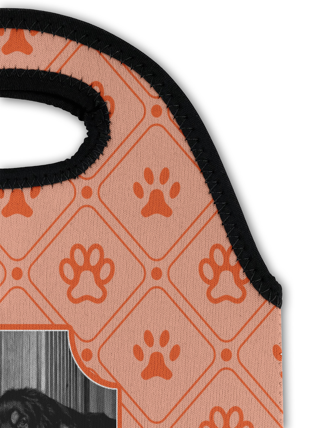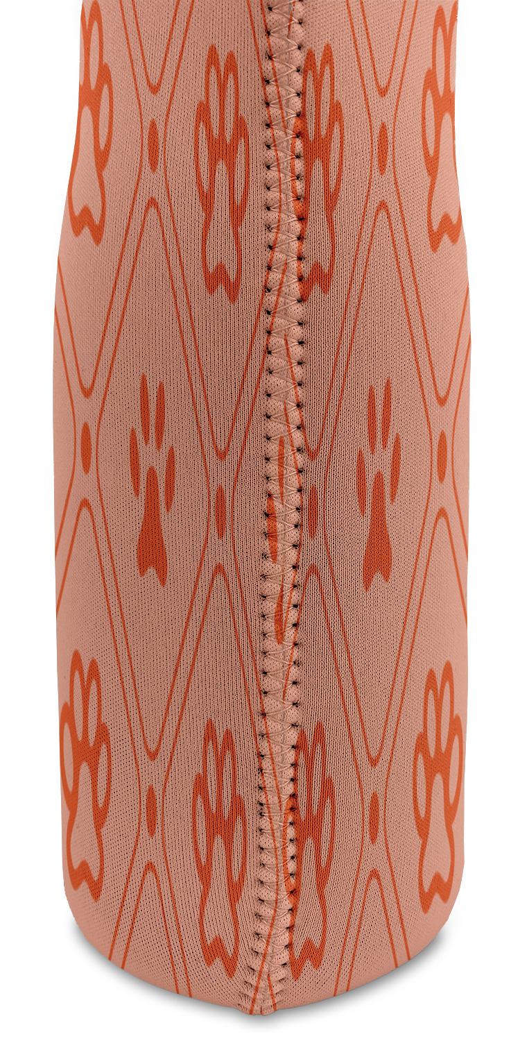 This design is a bright peach with accents of orange. In the middle, you can upload your favorite picture of your pet! It's a breeze with our design center. Underneath their picture, put their name or a fun saying. The background is filled with a fun pattern of pawprints and bones. This will be the perfect design for a sweet puppy.