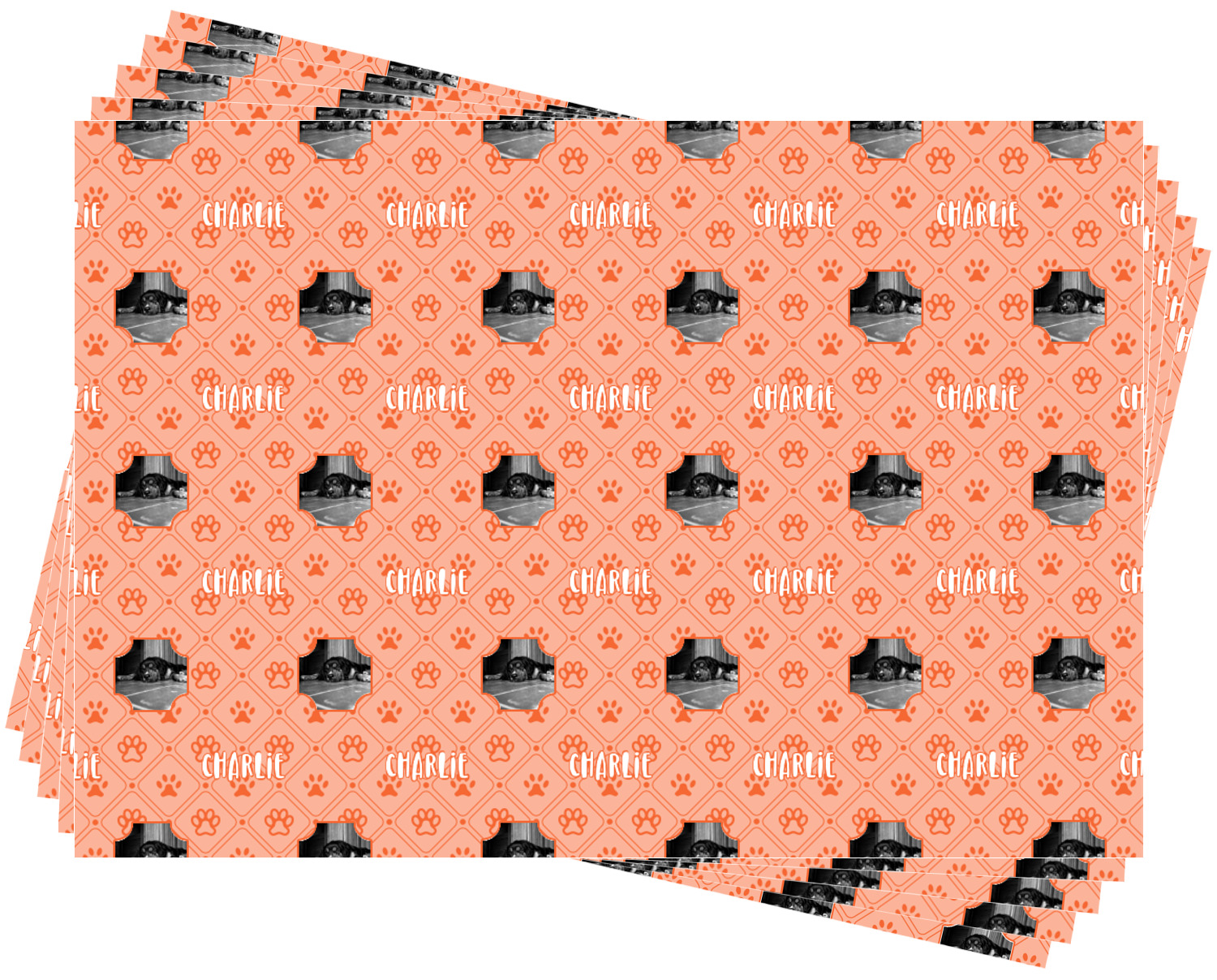 This design is a bright peach with accents of orange. In the middle, you can upload your favorite picture of your pet! It's a breeze with our design center. Underneath their picture, put their name or a fun saying. The background is filled with a fun pattern of pawprints and bones. This will be the perfect design for a sweet puppy.