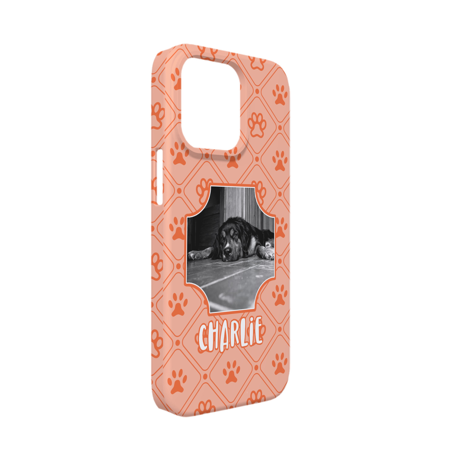 This design is a bright peach with accents of orange. In the middle, you can upload your favorite picture of your pet! It's a breeze with our design center. Underneath their picture, put their name or a fun saying. The background is filled with a fun pattern of pawprints and bones. This will be the perfect design for a sweet puppy.