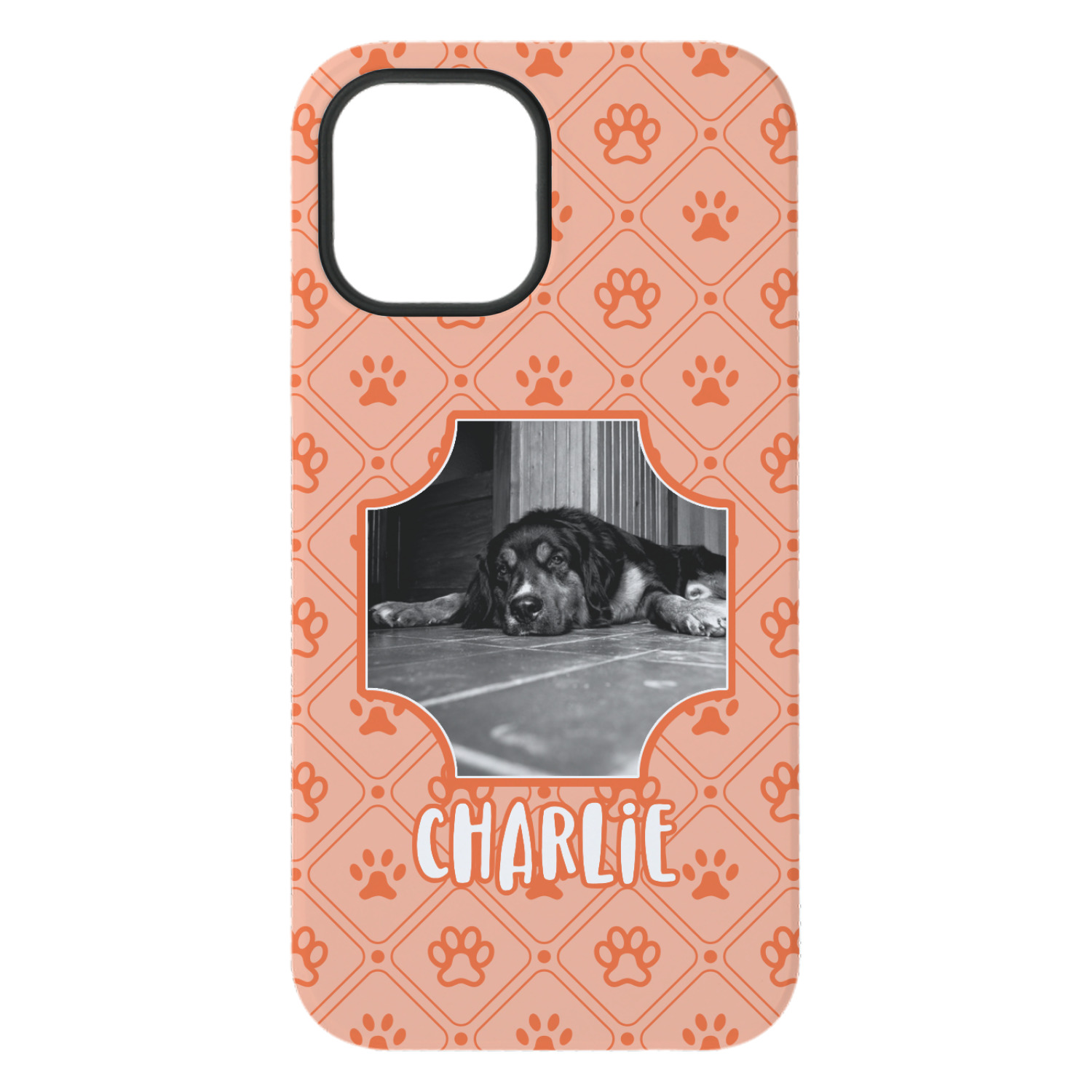 This design is a bright peach with accents of orange. In the middle, you can upload your favorite picture of your pet! It's a breeze with our design center. Underneath their picture, put their name or a fun saying. The background is filled with a fun pattern of pawprints and bones. This will be the perfect design for a sweet puppy.