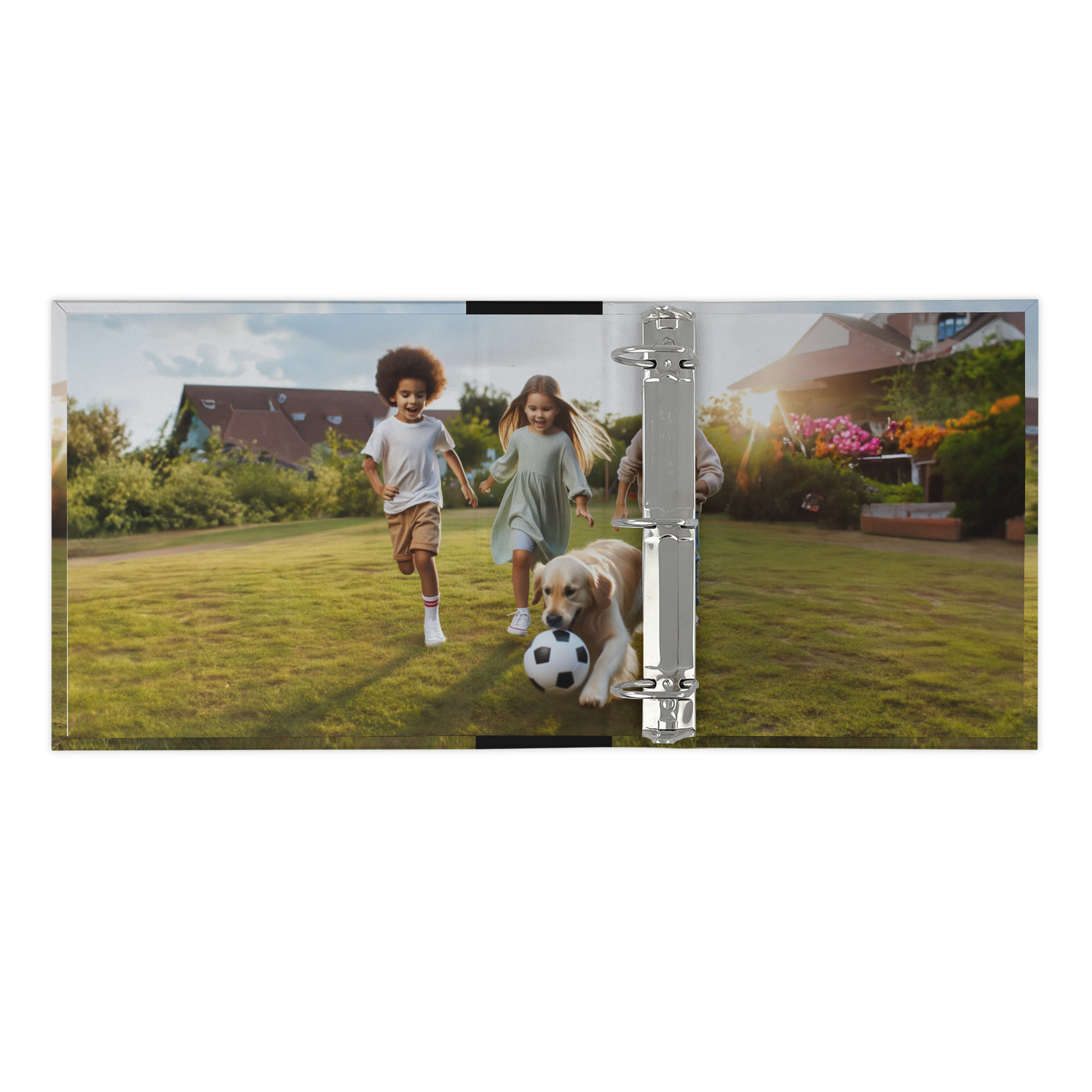 The outside is printed in 3 sections - front cover, spine and back cover - while the inside is printed in a full single print of your choice. The inside boasts a high quality nickel plated binder mechanism with a trigger opening function and is secured to the cardboard binder with posts and screws.