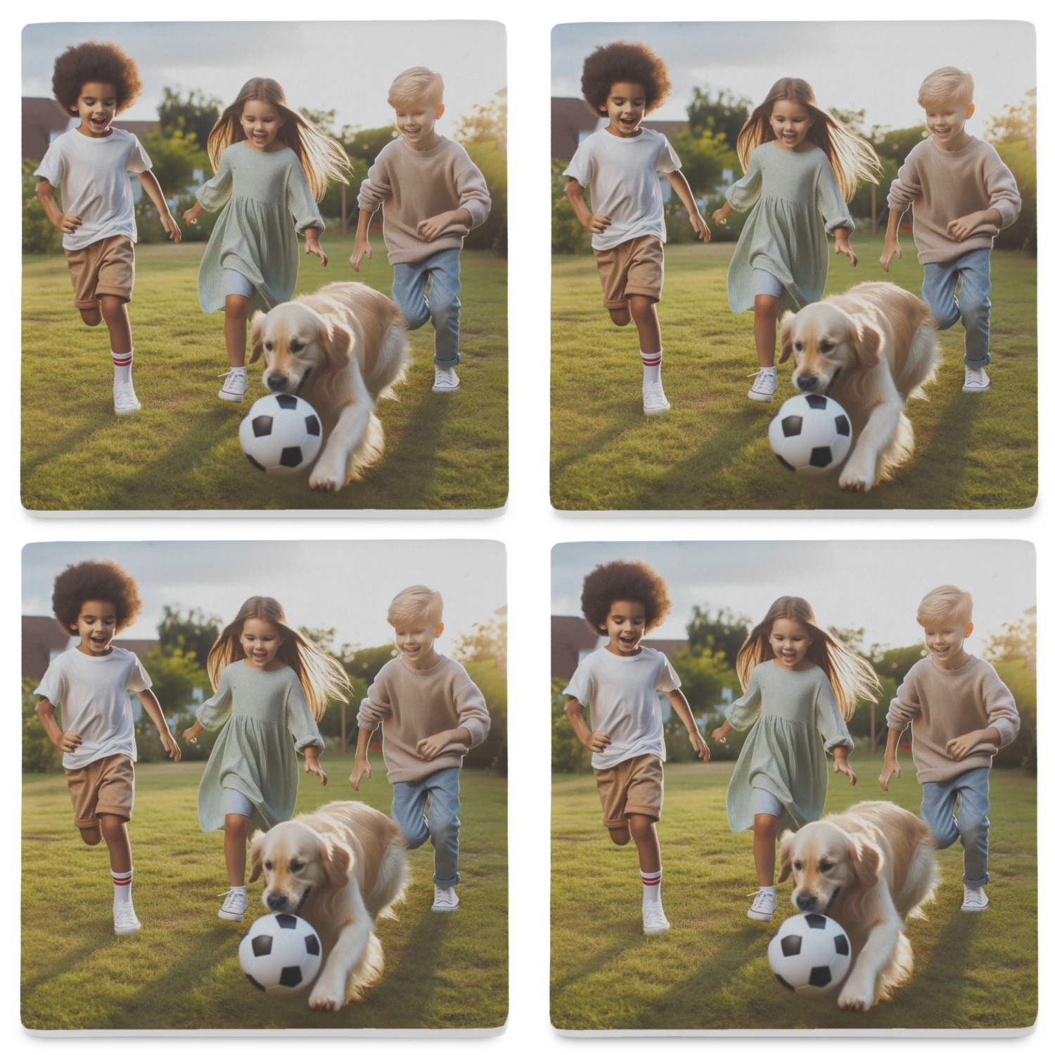By default, the 4 coasters all have the same design on them, however, you can change that and have a different design on each one of the 4 coasters. The choice is yours.