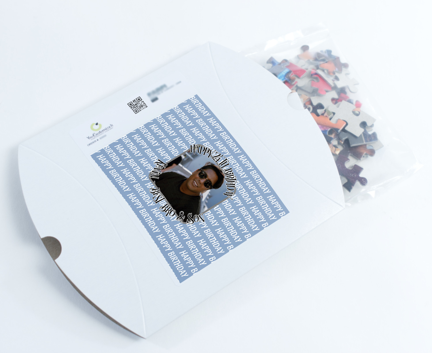 Depending on the look you are trying to achieve, you can add; a thematic pattern or background, with a photo in a frame and text or personalization to your puzzle. Basically if you can imagine it, you can design it!
