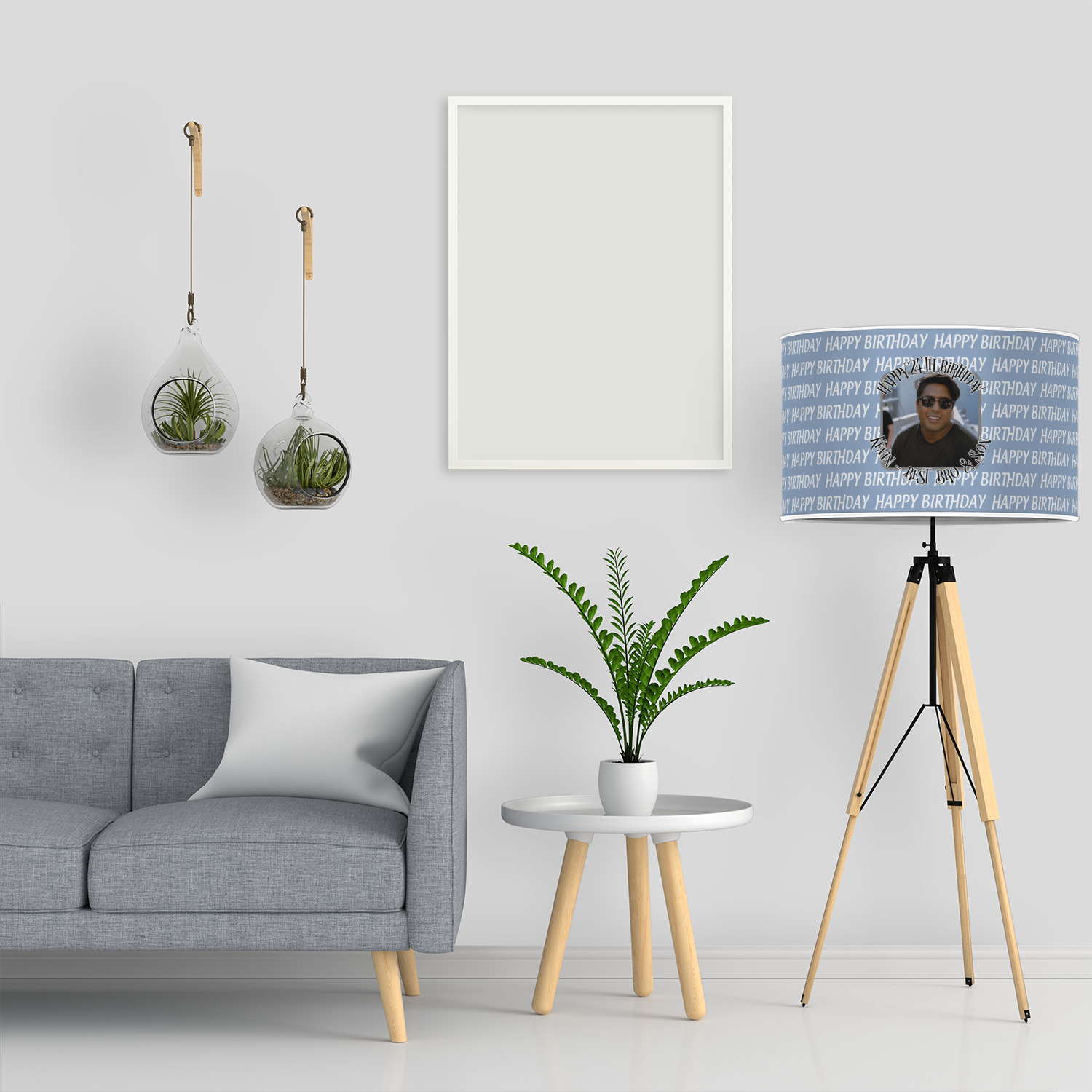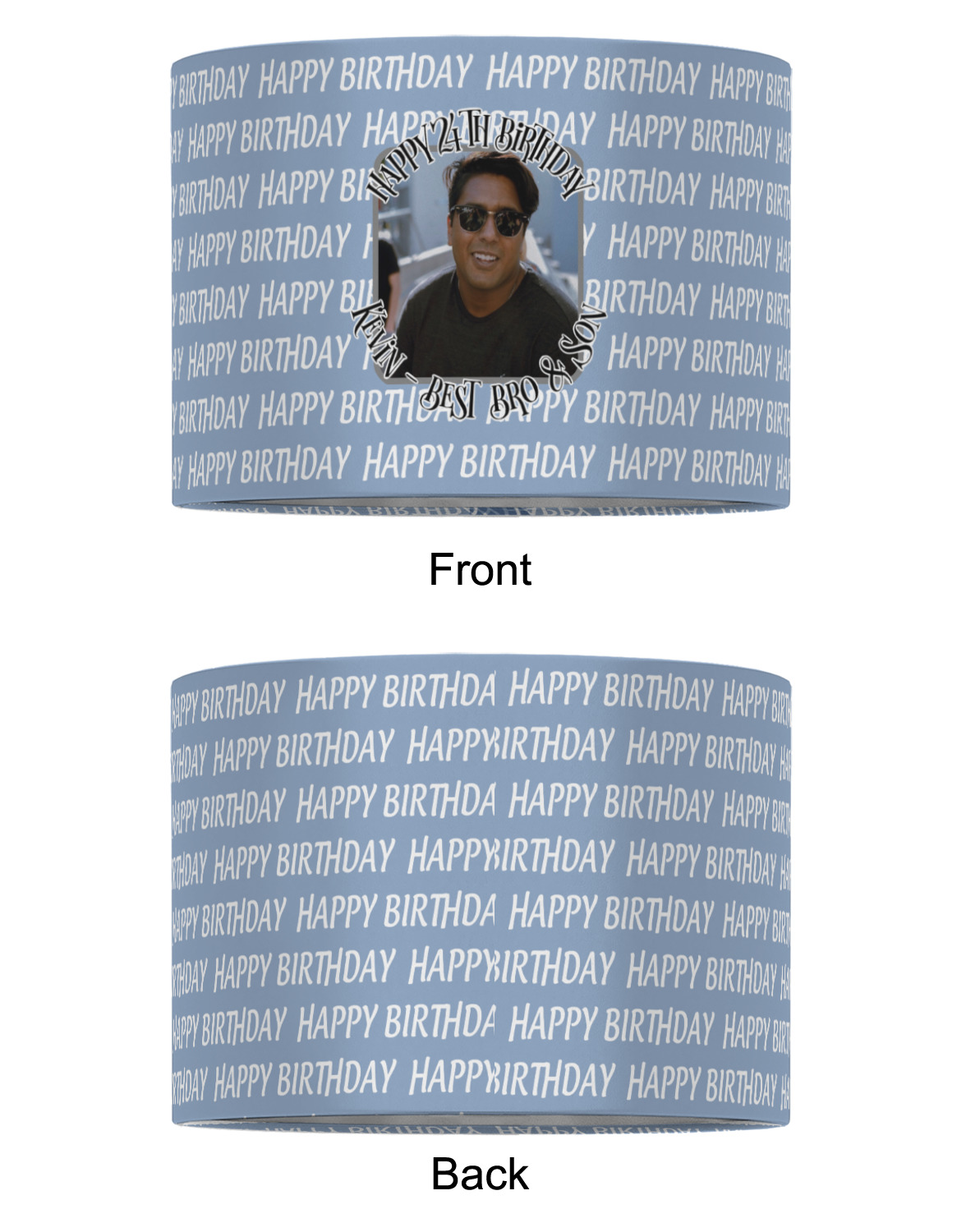 This design has a subtle background that says "Happy Birthday". You are able to upload your own picture of the birthday boy or girl right onto your design. The personalized text goes above and below your picture. This is a great design for pictures of you and the birthday boy/girl, so they can look at that cherished memory every day.