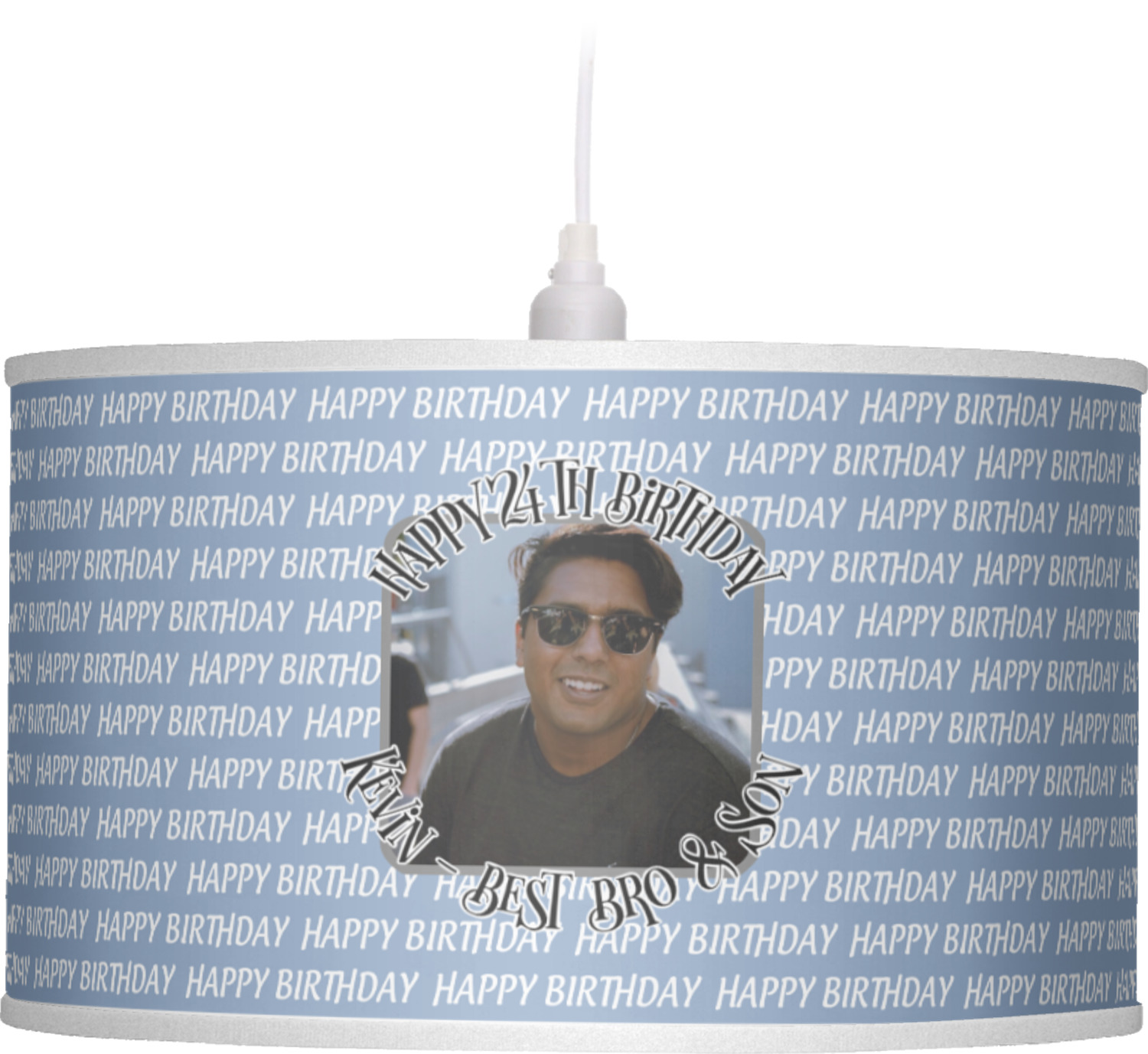 This design has a subtle background that says "Happy Birthday". You are able to upload your own picture of the birthday boy or girl right onto your design. The personalized text goes above and below your picture. This is a great design for pictures of you and the birthday boy/girl, so they can look at that cherished memory every day.