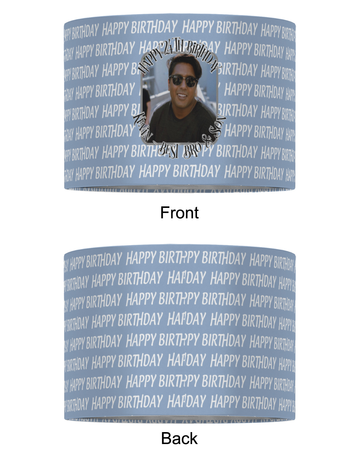 This design has a subtle background that says "Happy Birthday". You are able to upload your own picture of the birthday boy or girl right onto your design. The personalized text goes above and below your picture. This is a great design for pictures of you and the birthday boy/girl, so they can look at that cherished memory every day.