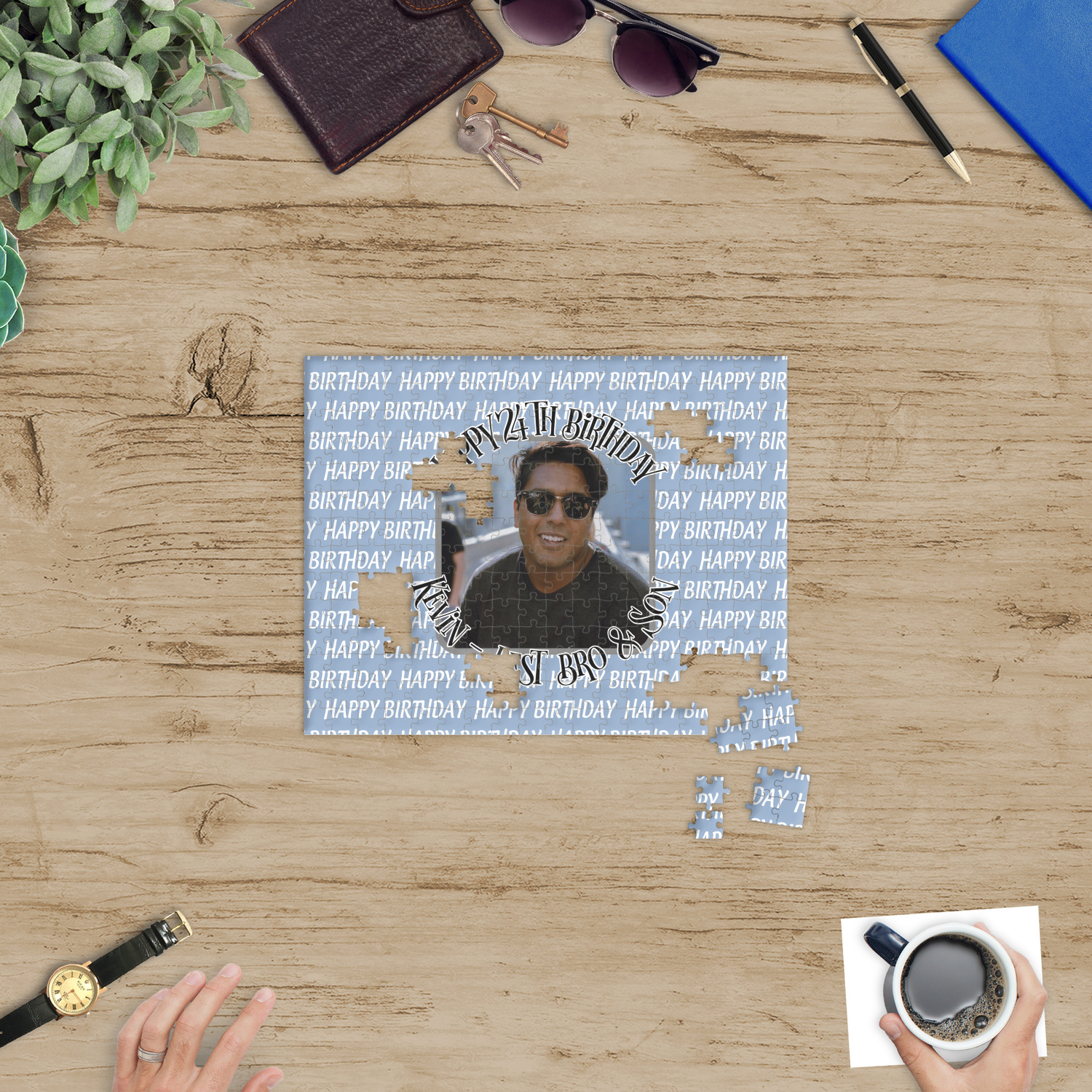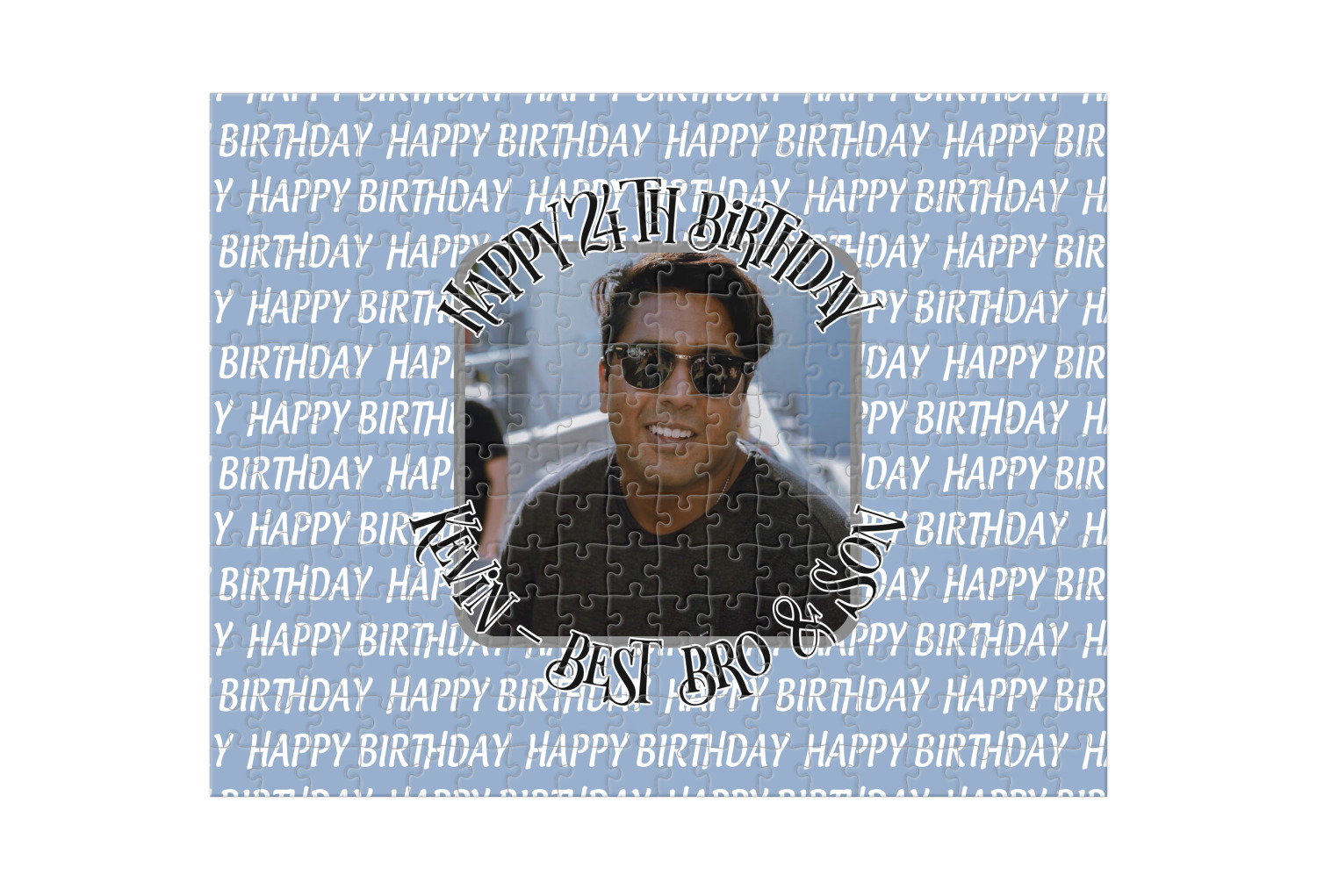 Depending on the look you are trying to achieve, you can add; a thematic pattern or background, with a photo in a frame and text or personalization to your puzzle. Basically if you can imagine it, you can design it!