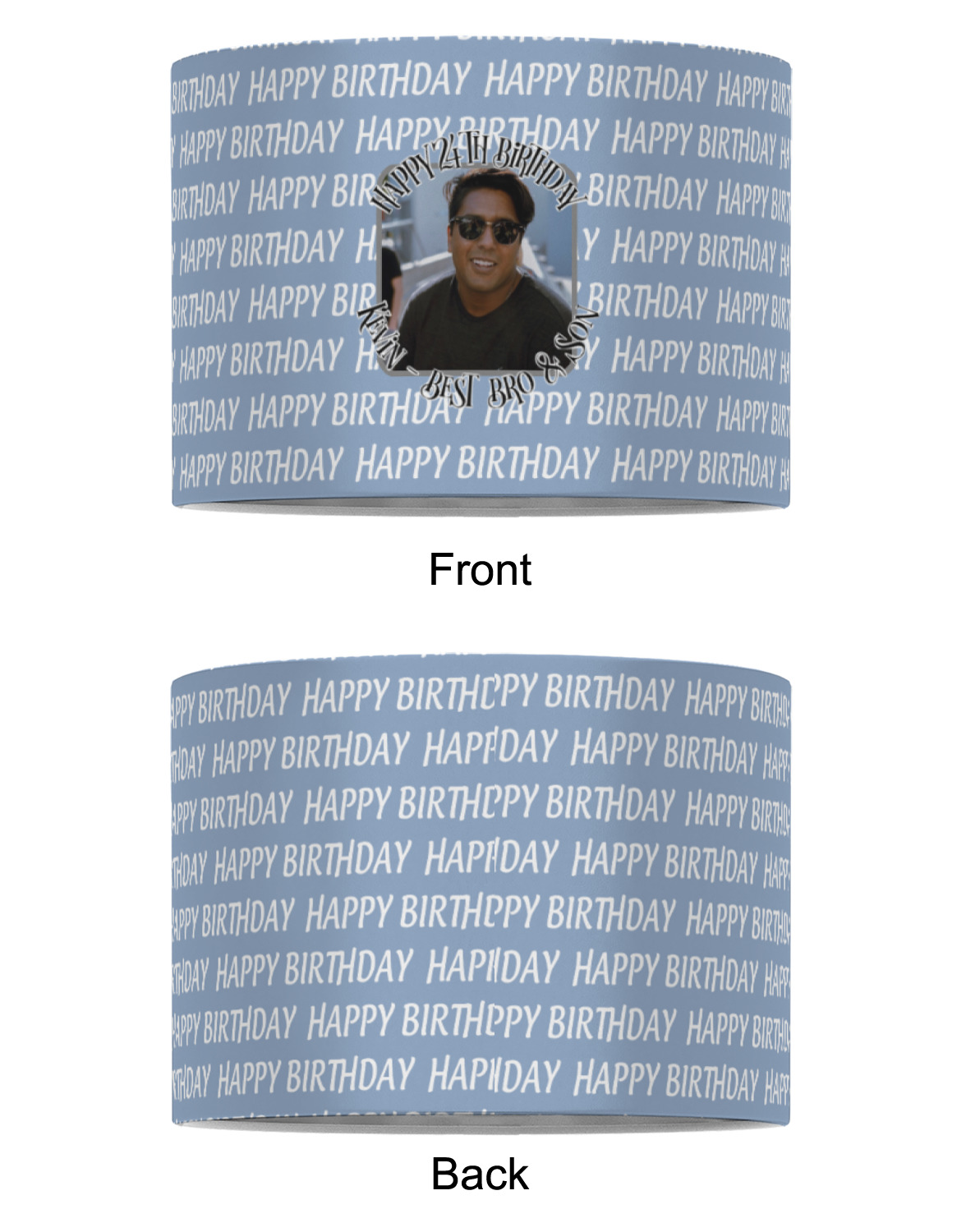 This design has a subtle background that says "Happy Birthday". You are able to upload your own picture of the birthday boy or girl right onto your design. The personalized text goes above and below your picture. This is a great design for pictures of you and the birthday boy/girl, so they can look at that cherished memory every day.