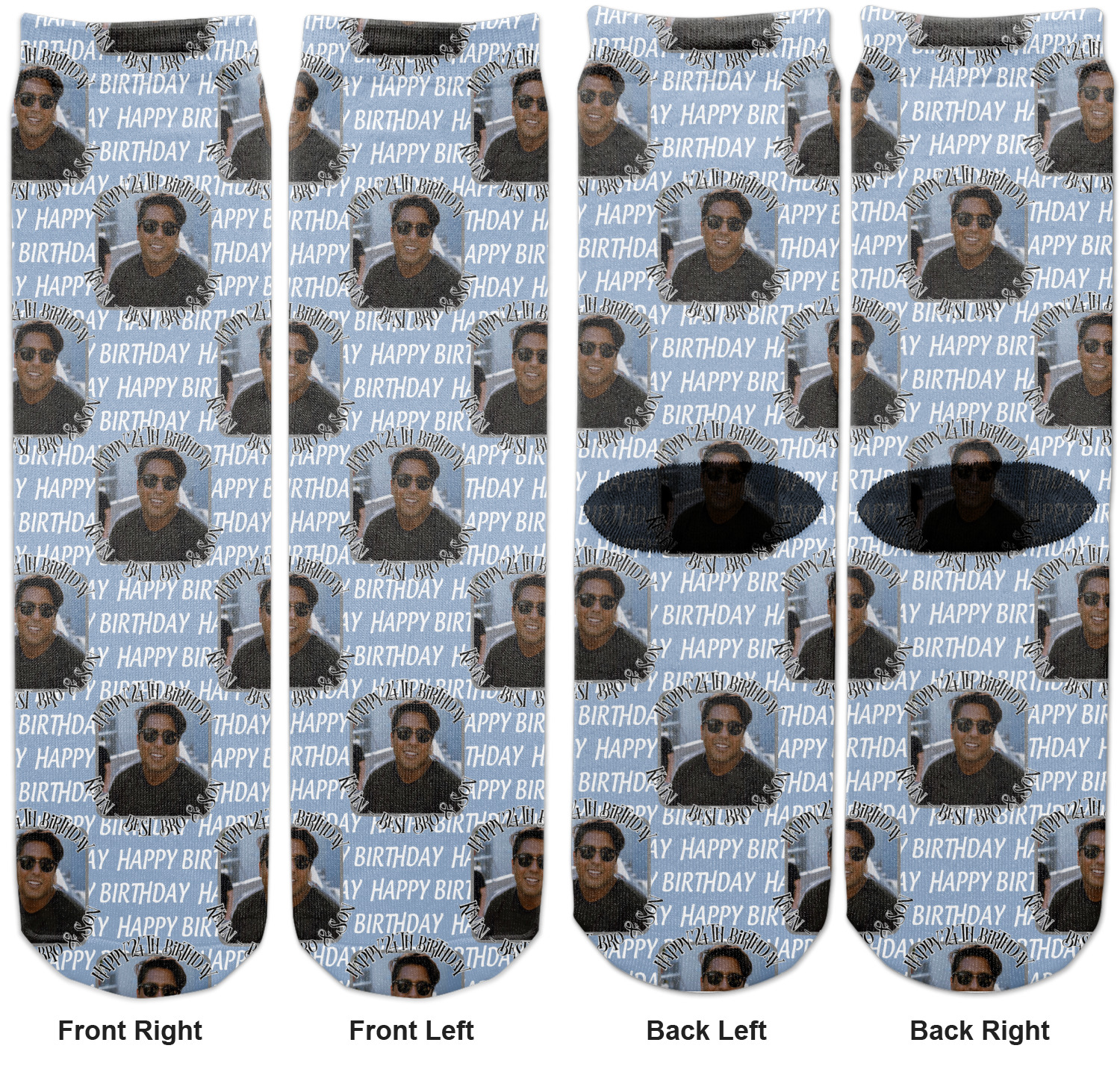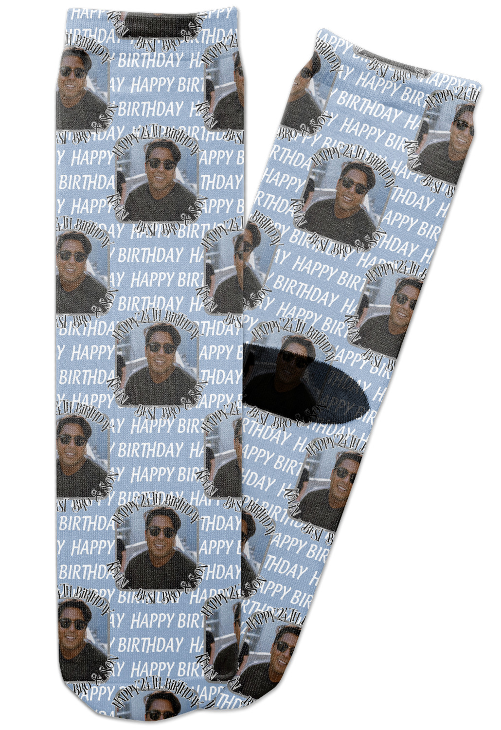 This design has a subtle background that says "Happy Birthday". You are able to upload your own picture of the birthday boy or girl right onto your design. The personalized text goes above and below your picture. This is a great design for pictures of you and the birthday boy/girl, so they can look at that cherished memory every day.