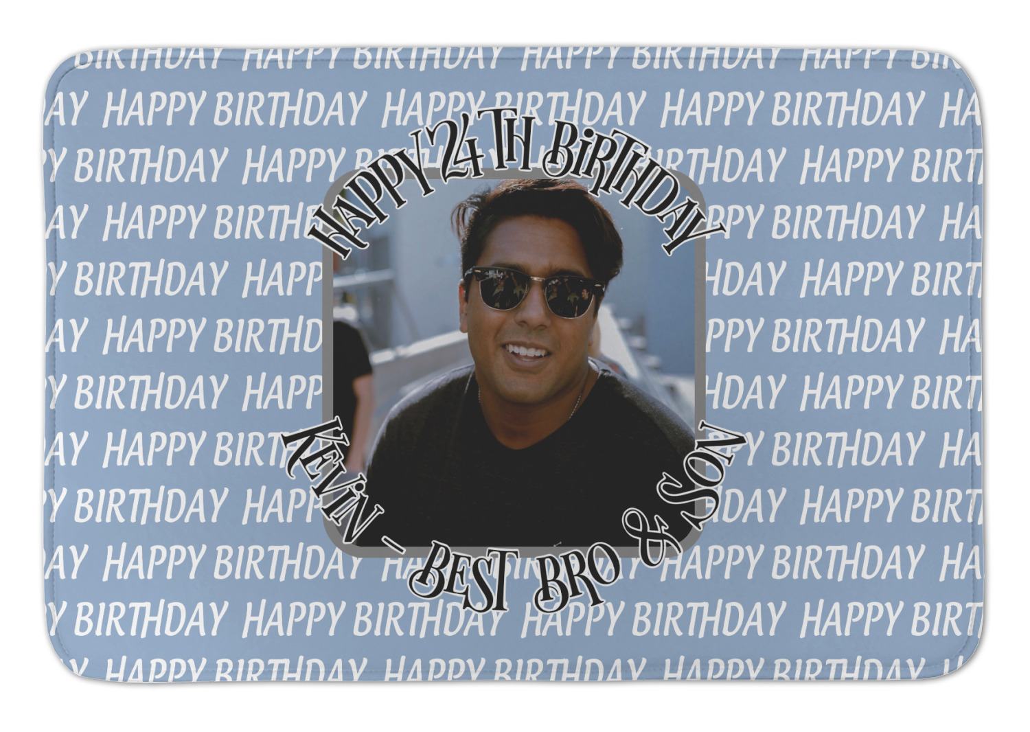 This design has a subtle background that says "Happy Birthday". You are able to upload your own picture of the birthday boy or girl right onto your design. The personalized text goes above and below your picture. This is a great design for pictures of you and the birthday boy/girl, so they can look at that cherished memory every day.