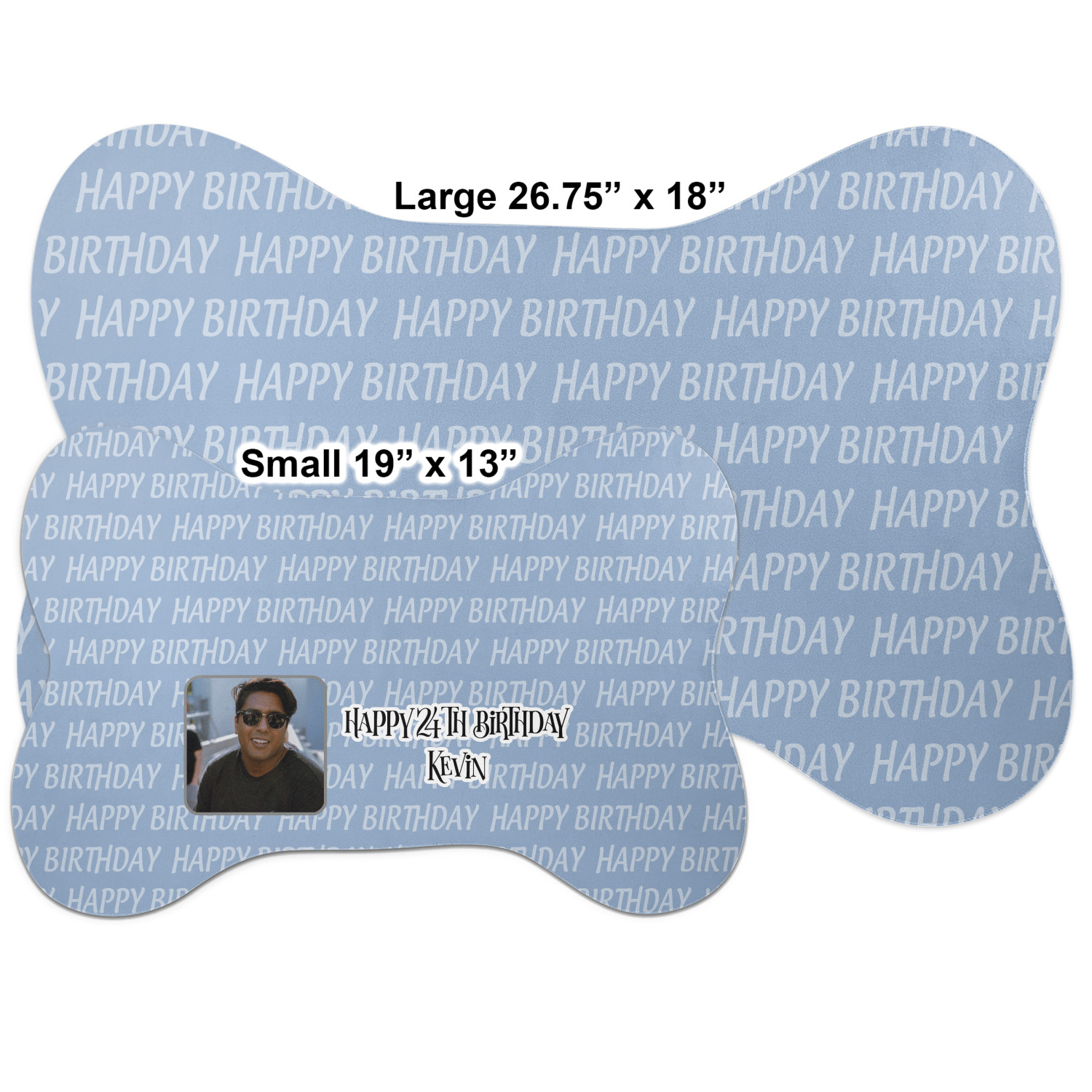 This design has a subtle background that says "Happy Birthday". You are able to upload your own picture of the birthday boy or girl right onto your design. The personalized text goes above and below your picture. This is a great design for pictures of you and the birthday boy/girl, so they can look at that cherished memory every day.