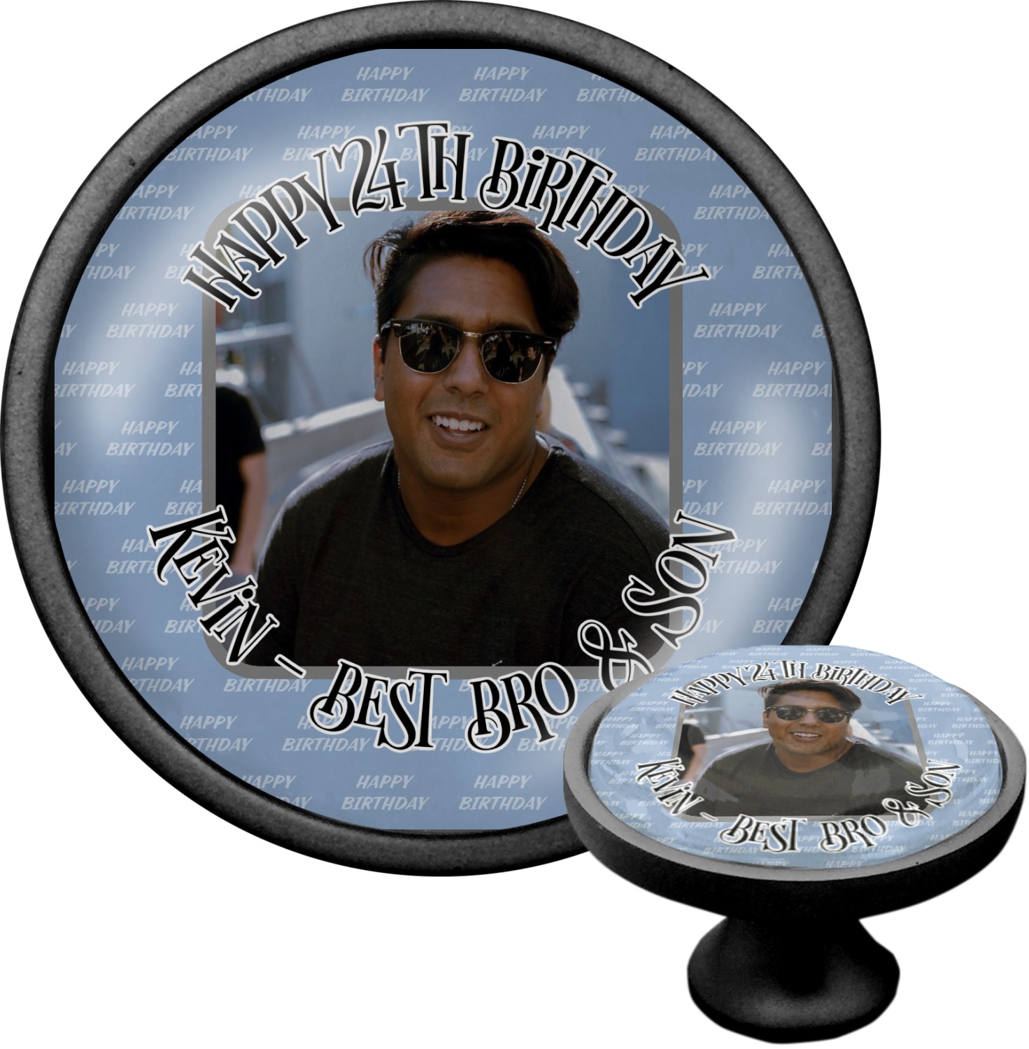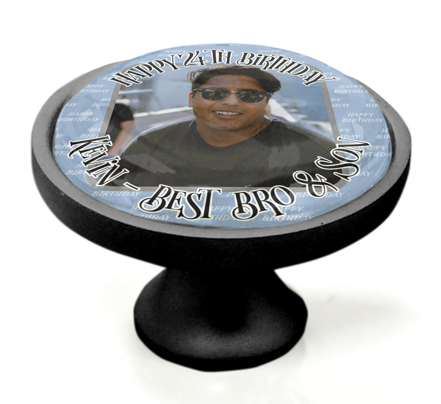 This design has a subtle background that says "Happy Birthday". You are able to upload your own picture of the birthday boy or girl right onto your design. The personalized text goes above and below your picture. This is a great design for pictures of you and the birthday boy/girl, so they can look at that cherished memory every day.