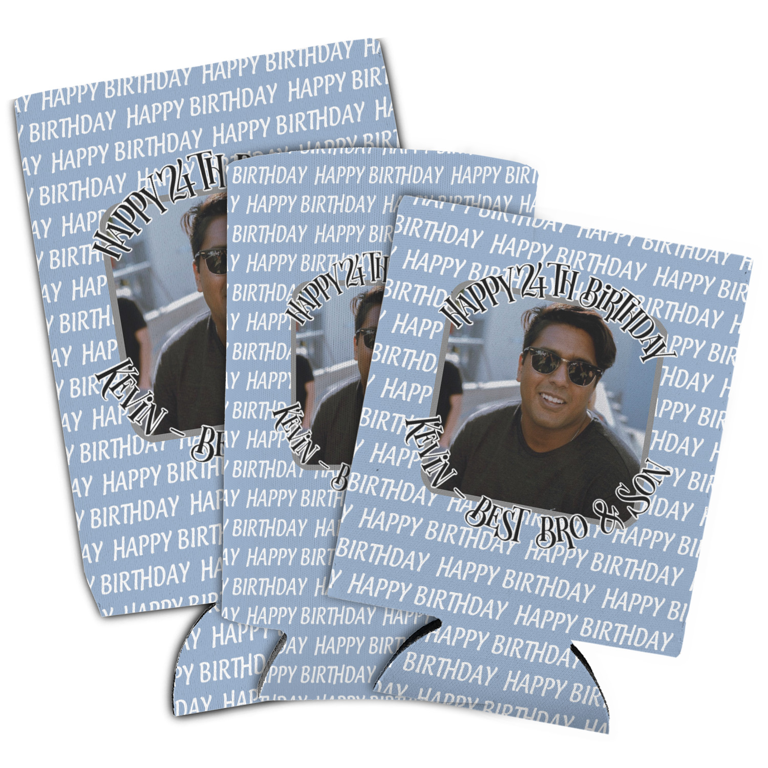 This design has a subtle background that says "Happy Birthday". You are able to upload your own picture of the birthday boy or girl right onto your design. The personalized text goes above and below your picture. This is a great design for pictures of you and the birthday boy/girl, so they can look at that cherished memory every day.