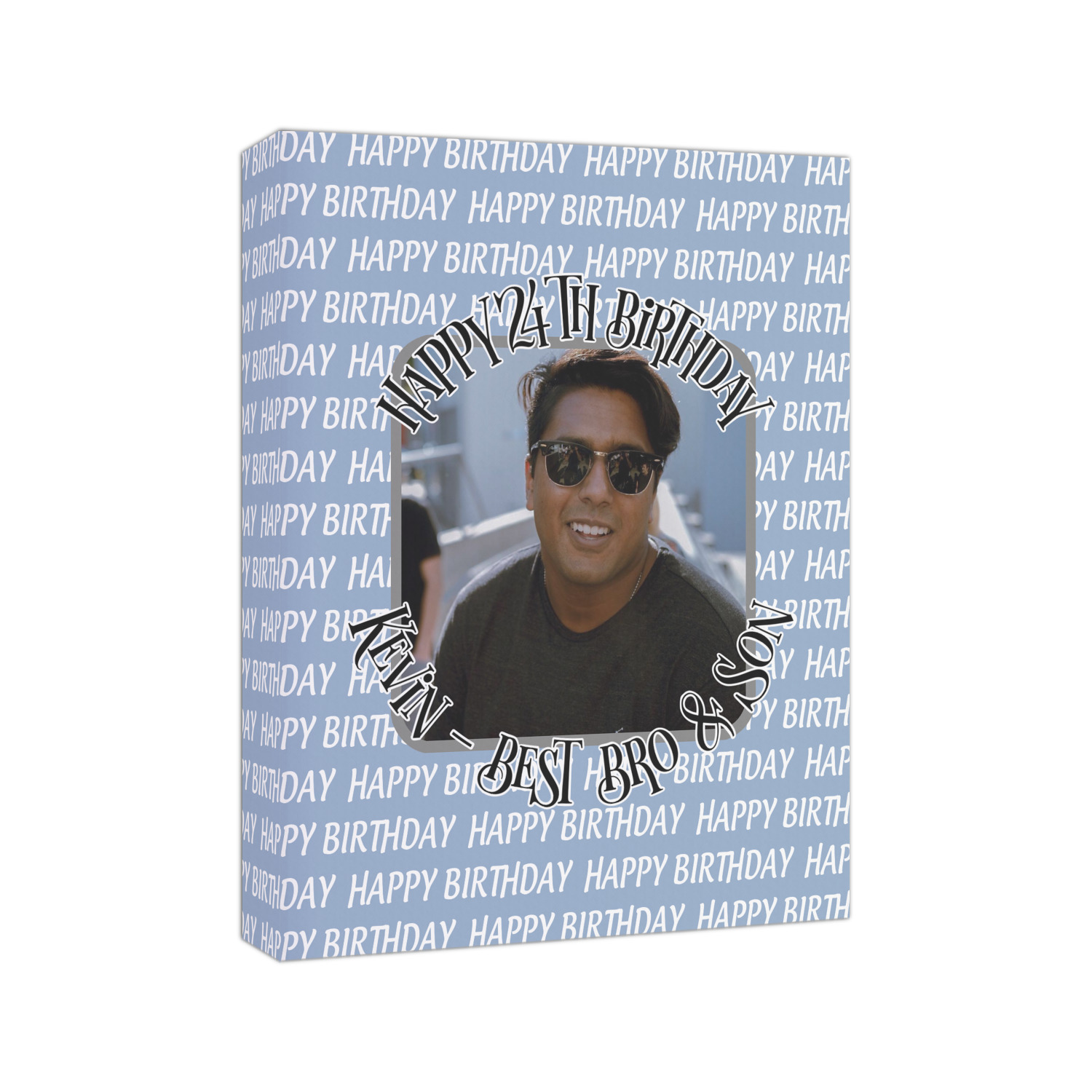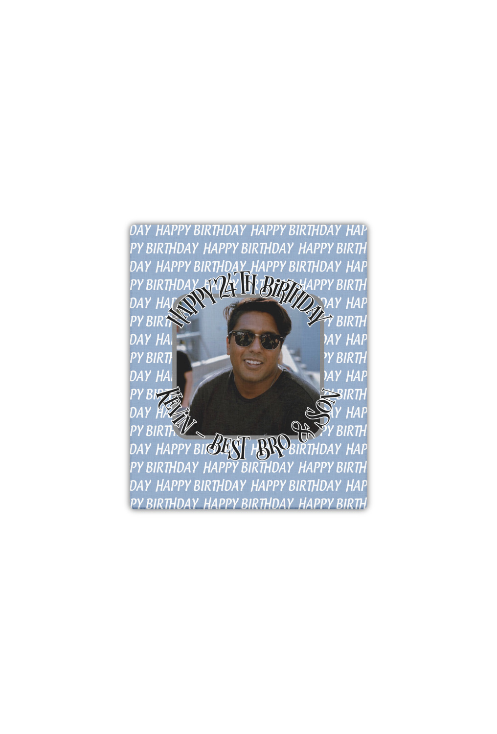This design has a subtle background that says "Happy Birthday". You are able to upload your own picture of the birthday boy or girl right onto your design. The personalized text goes above and below your picture. This is a great design for pictures of you and the birthday boy/girl, so they can look at that cherished memory every day.