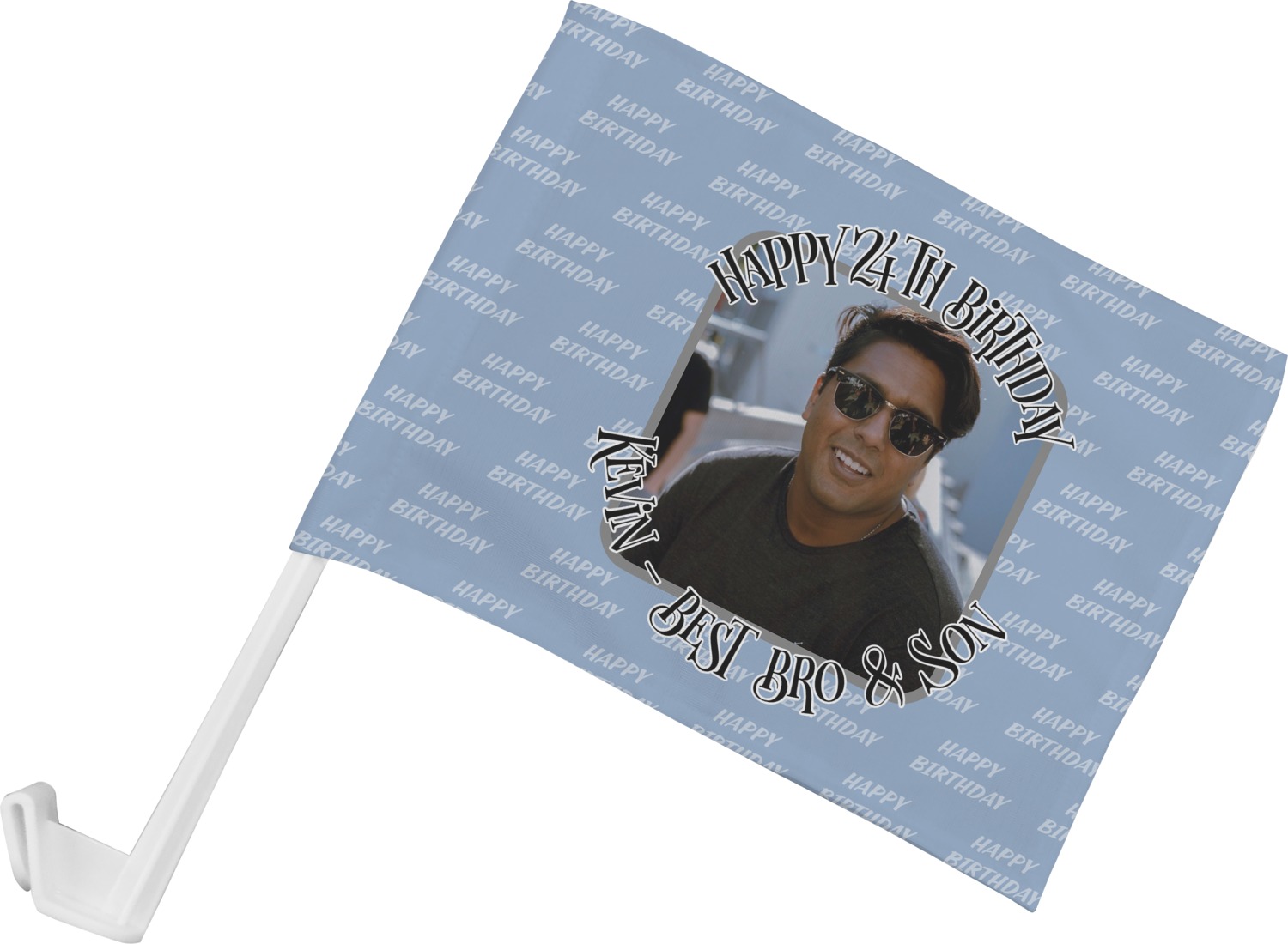 Our personalized flags are made from a durable, yet lightweight cloth that will proudly bear your logo or design of choice, while withstanding the outside elements. We have two size options - 8" x 11" and 11" x 15". Both come with a flag pole which includes a clip that secures the pole to the side window, whether it is rolled up or down. The flags are printed on both sides to display your design from all directions.