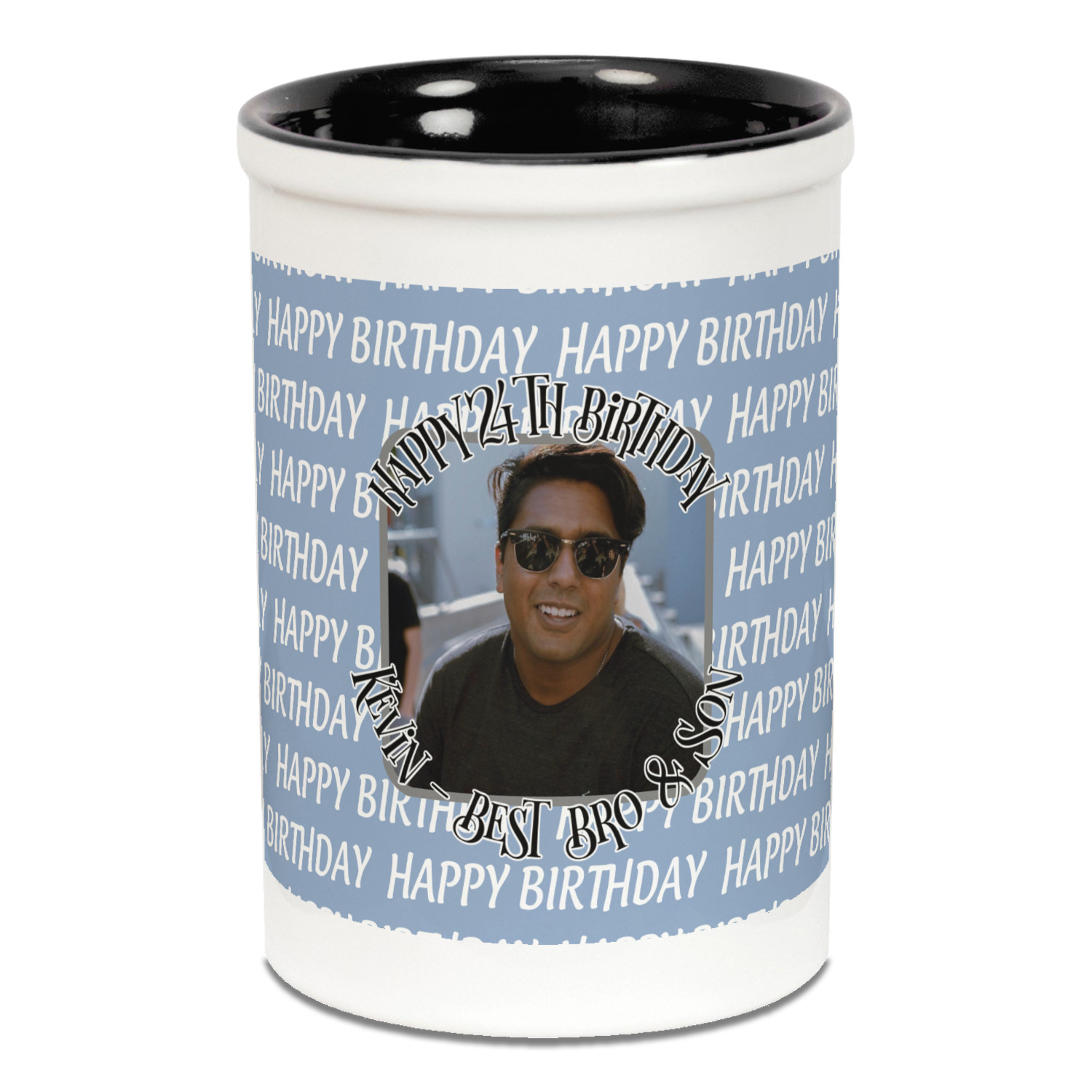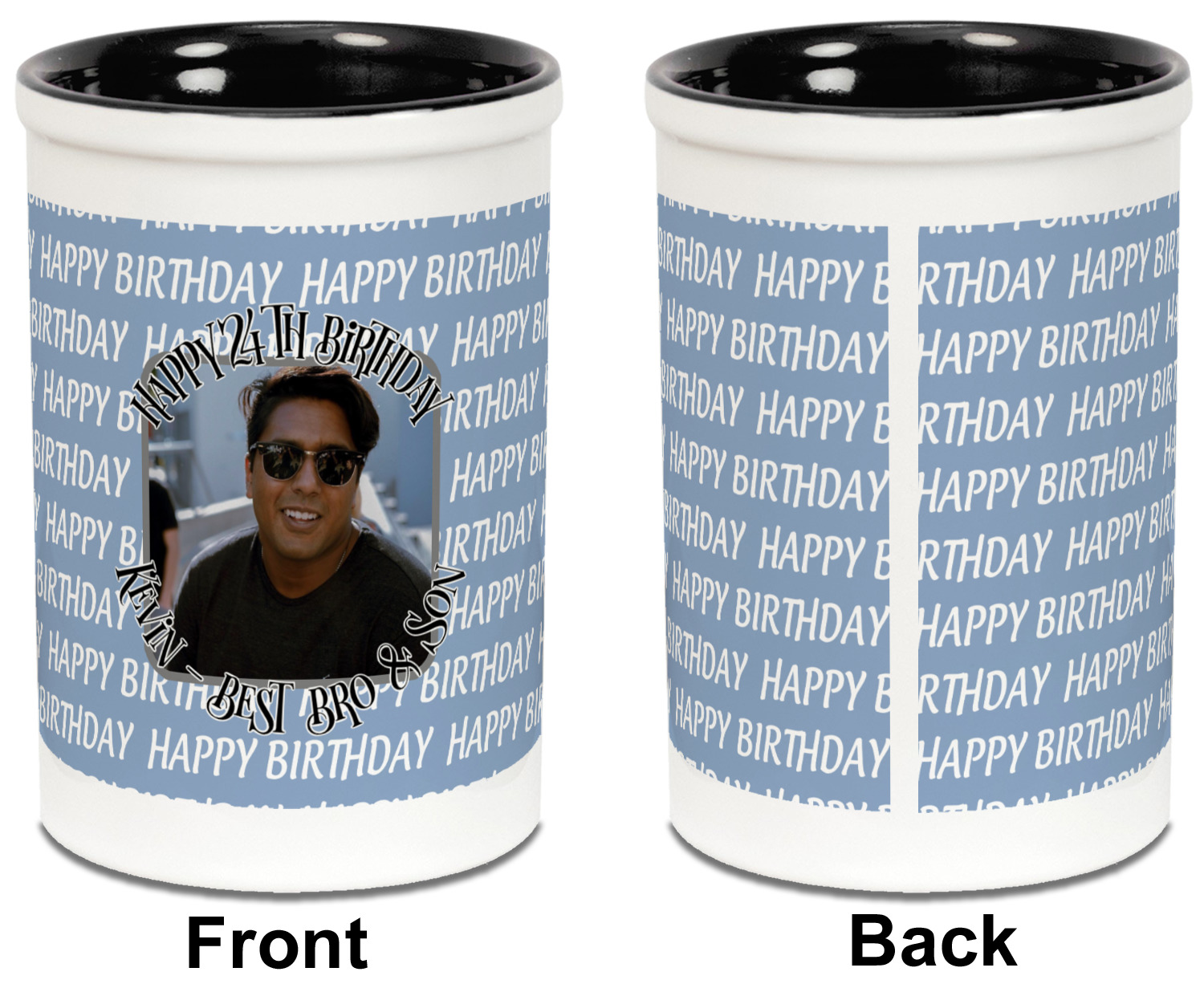 This design has a subtle background that says "Happy Birthday". You are able to upload your own picture of the birthday boy or girl right onto your design. The personalized text goes above and below your picture. This is a great design for pictures of you and the birthday boy/girl, so they can look at that cherished memory every day.