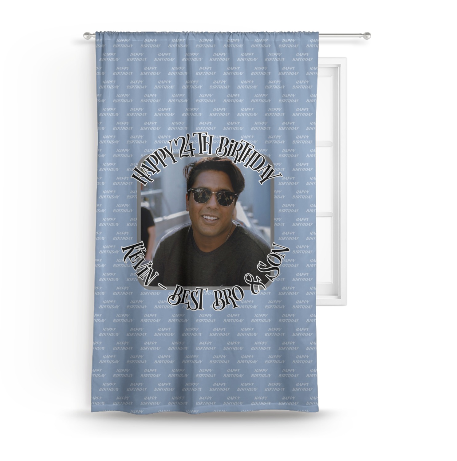 This design has a subtle background that says "Happy Birthday". You are able to upload your own picture of the birthday boy or girl right onto your design. The personalized text goes above and below your picture. This is a great design for pictures of you and the birthday boy/girl, so they can look at that cherished memory every day.