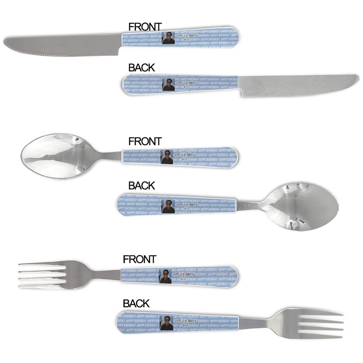 One of those items we all use on a daily basis and never give it much thought - cutlery. Having your own customized set of cutlery adds that special touch. A great addition to our custom plates and drinking pint glasses, this flatware set can be made in the same patterns to match.