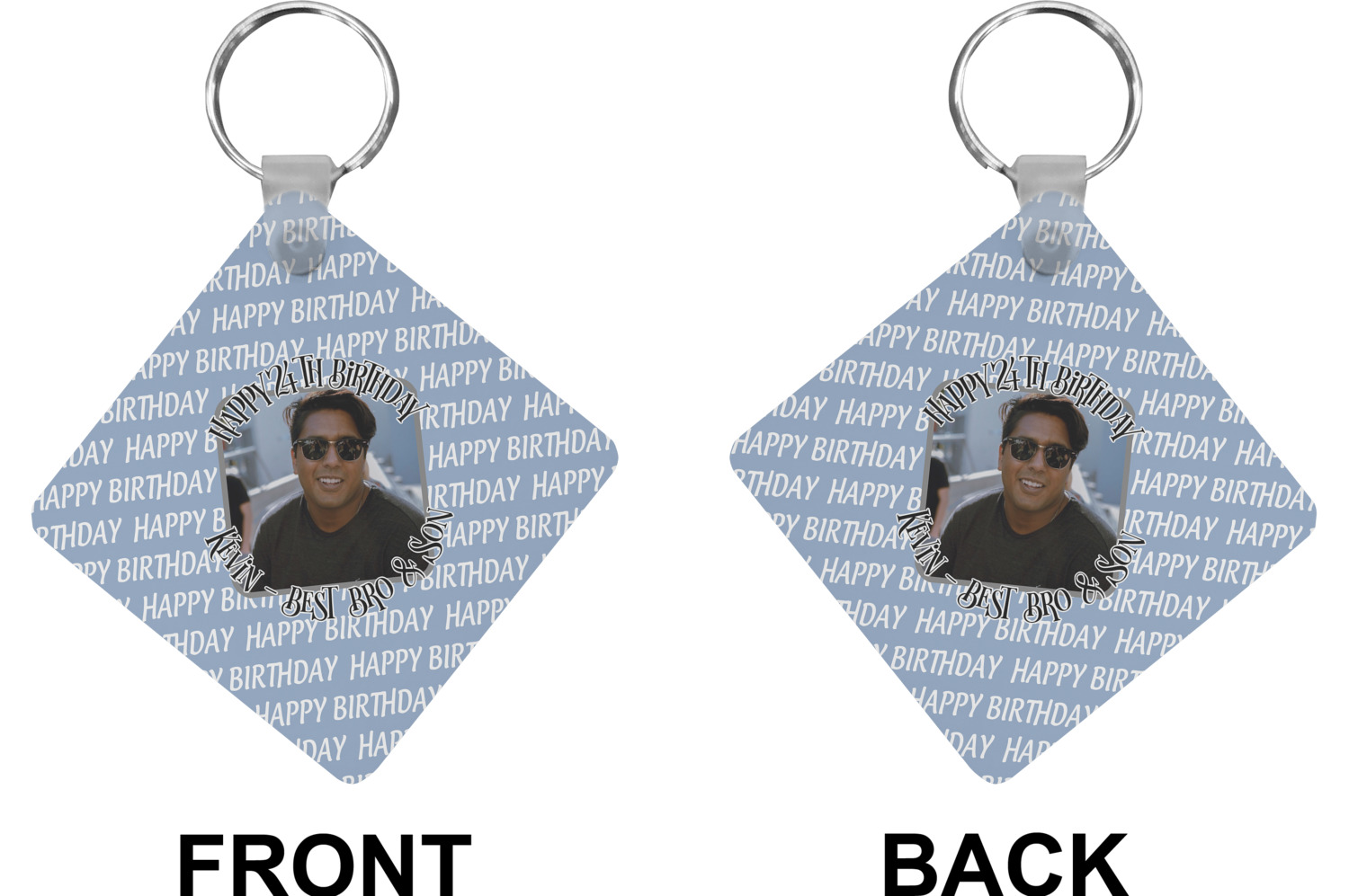 Our personalized keychains attach to the included metal, split key ring with a plastic, removable snap. Since a metal ring is included with your purchase, you have the liberty to keep your keys together on the ring, with or without your unique keychain. We offer this keychain in three different shapes: circle, heart, or diamond. We print your personalized design(s) on both sides of the key chain, and the surface has a glossy, reflective finish that only emphasizes your design. Each keychain is approximately 2.25 by 2.25 inches.