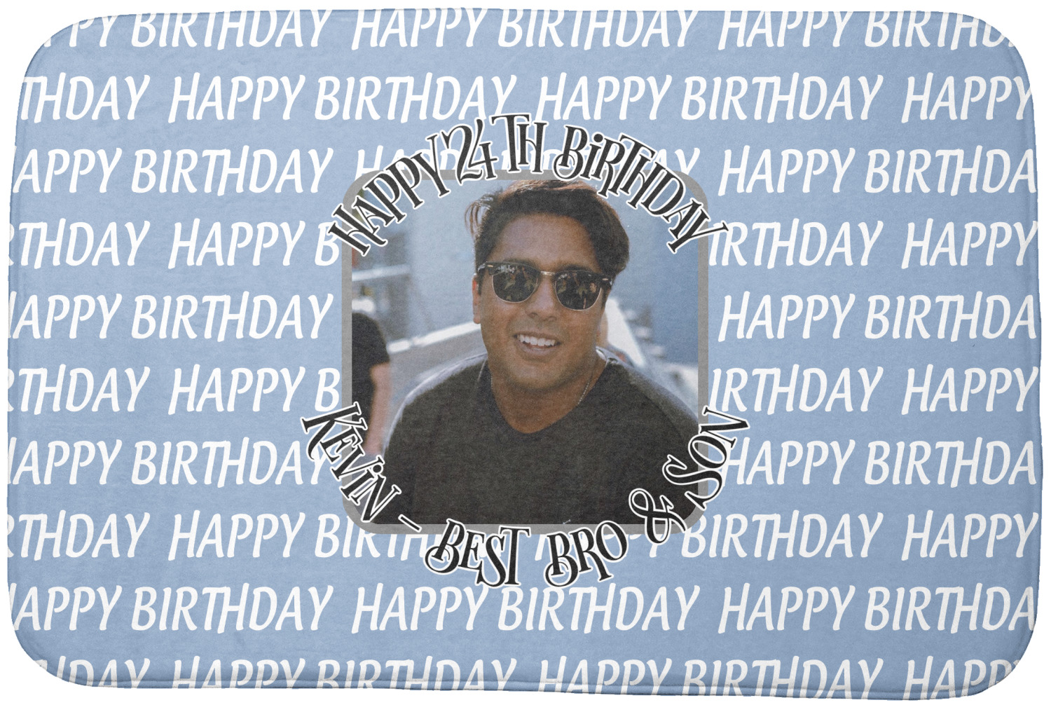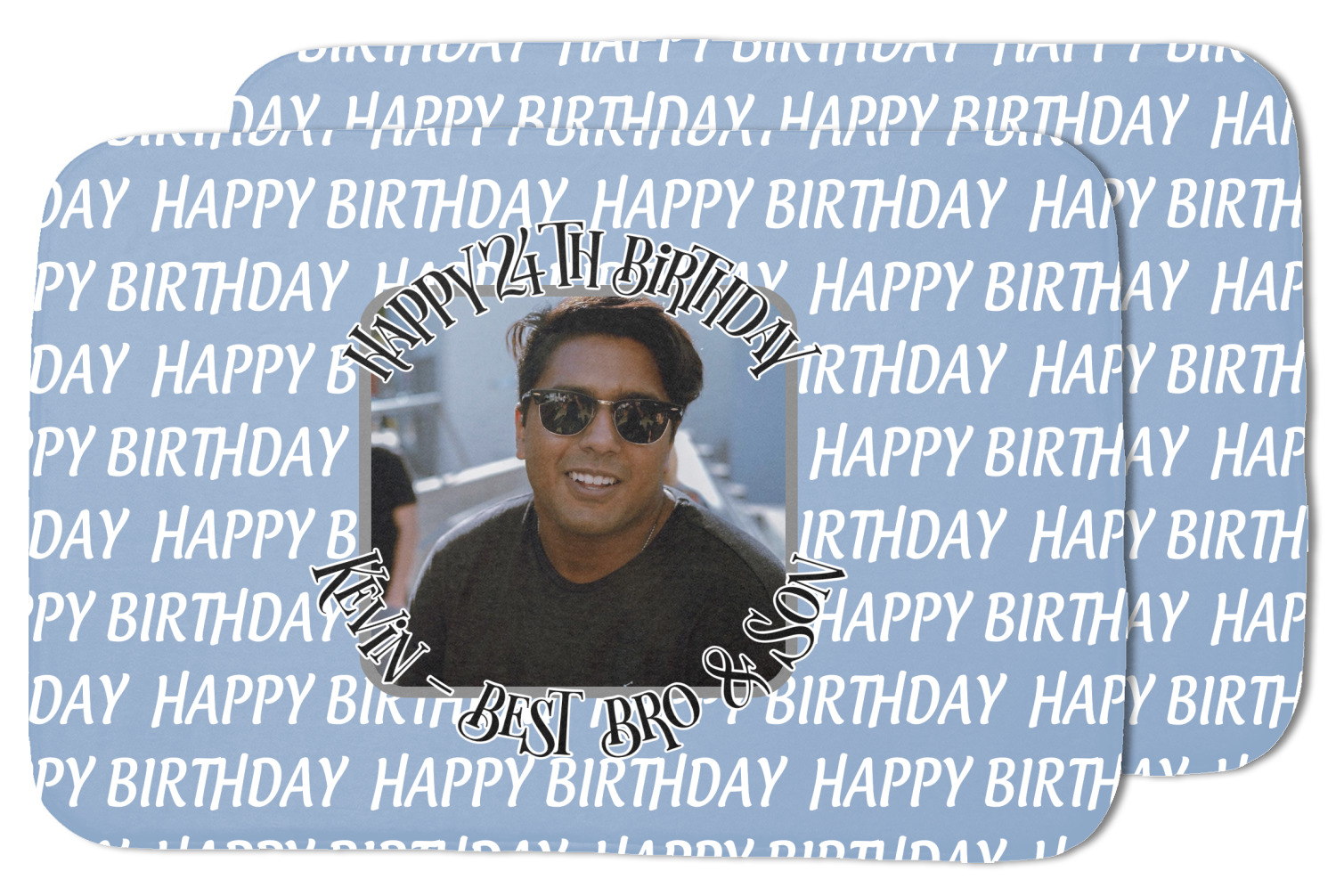 This design has a subtle background that says "Happy Birthday". You are able to upload your own picture of the birthday boy or girl right onto your design. The personalized text goes above and below your picture. This is a great design for pictures of you and the birthday boy/girl, so they can look at that cherished memory every day.