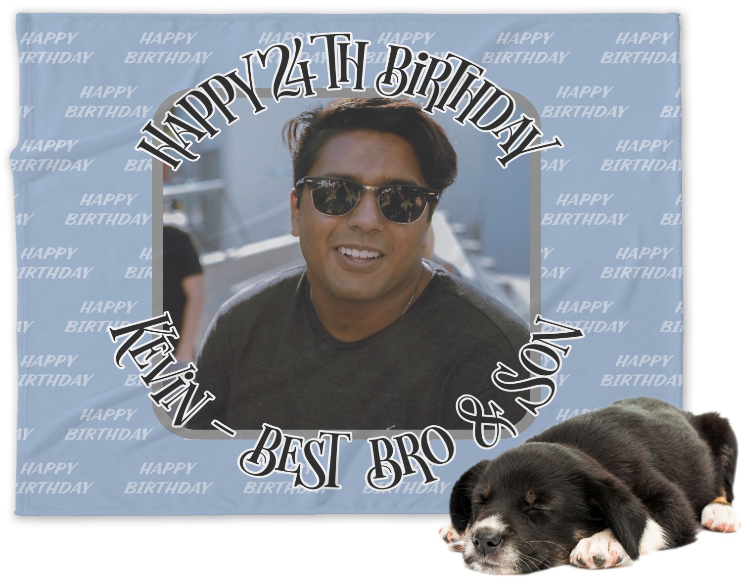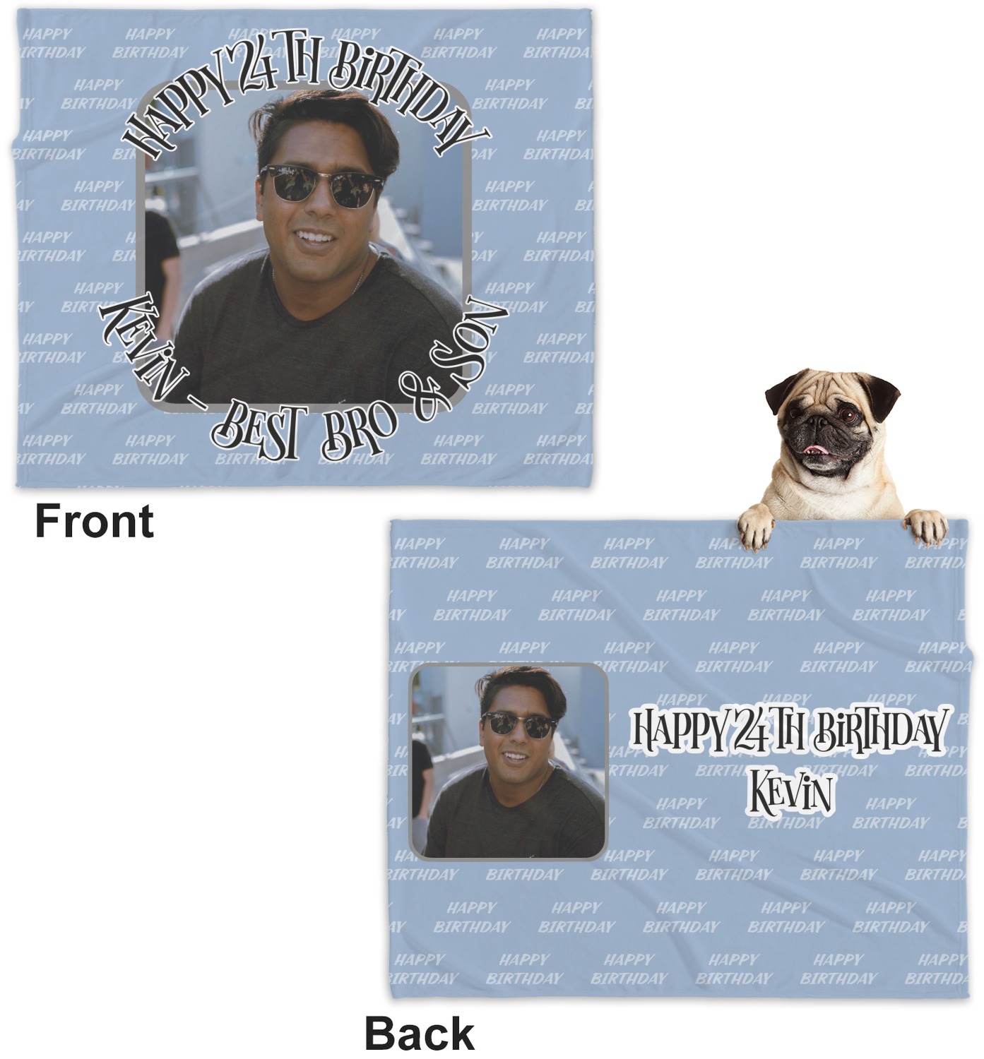 These dog blankets are crafted from a gentle, soft-to-the-touch, minky material. We print your customizations, either matching or differing, on both the top and underside of the blanket. These personalized dog blankets are available in two sizes: regular and large. Our regular size, at 40" x 30", accommodates small and some medium size dogs. At 60" x 50", our large dog blanket is a better fit for bigger breeds. Though specialized for dogs, these blankets still make a thoughtful gift for your favorite feline, or any other pet in mind!