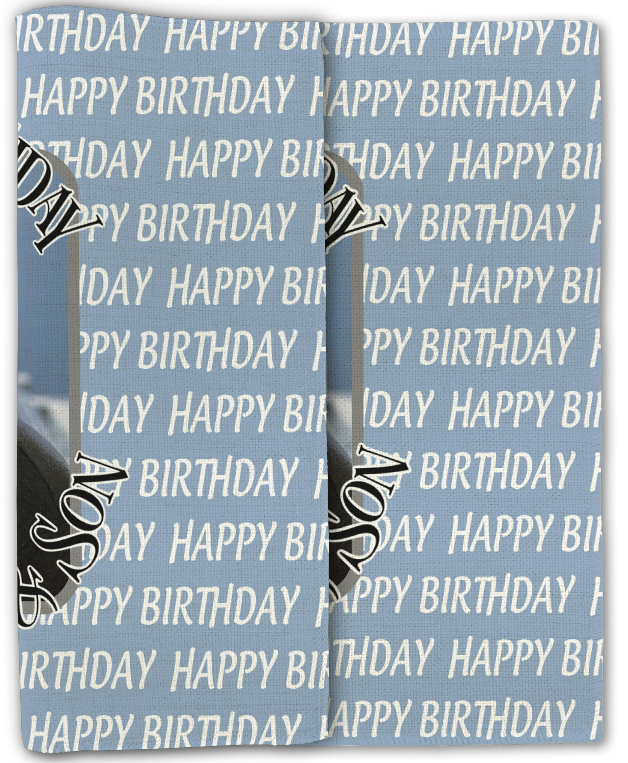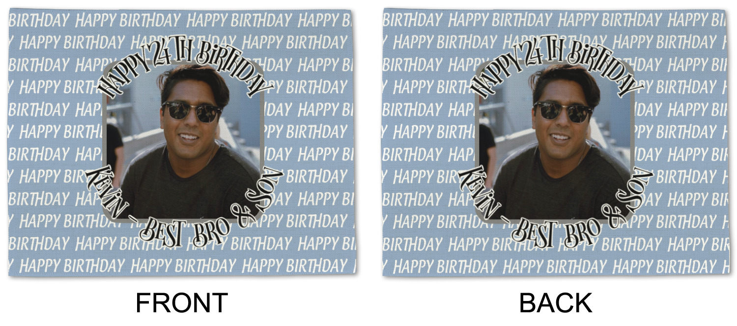This design has a subtle background that says "Happy Birthday". You are able to upload your own picture of the birthday boy or girl right onto your design. The personalized text goes above and below your picture. This is a great design for pictures of you and the birthday boy/girl, so they can look at that cherished memory every day.