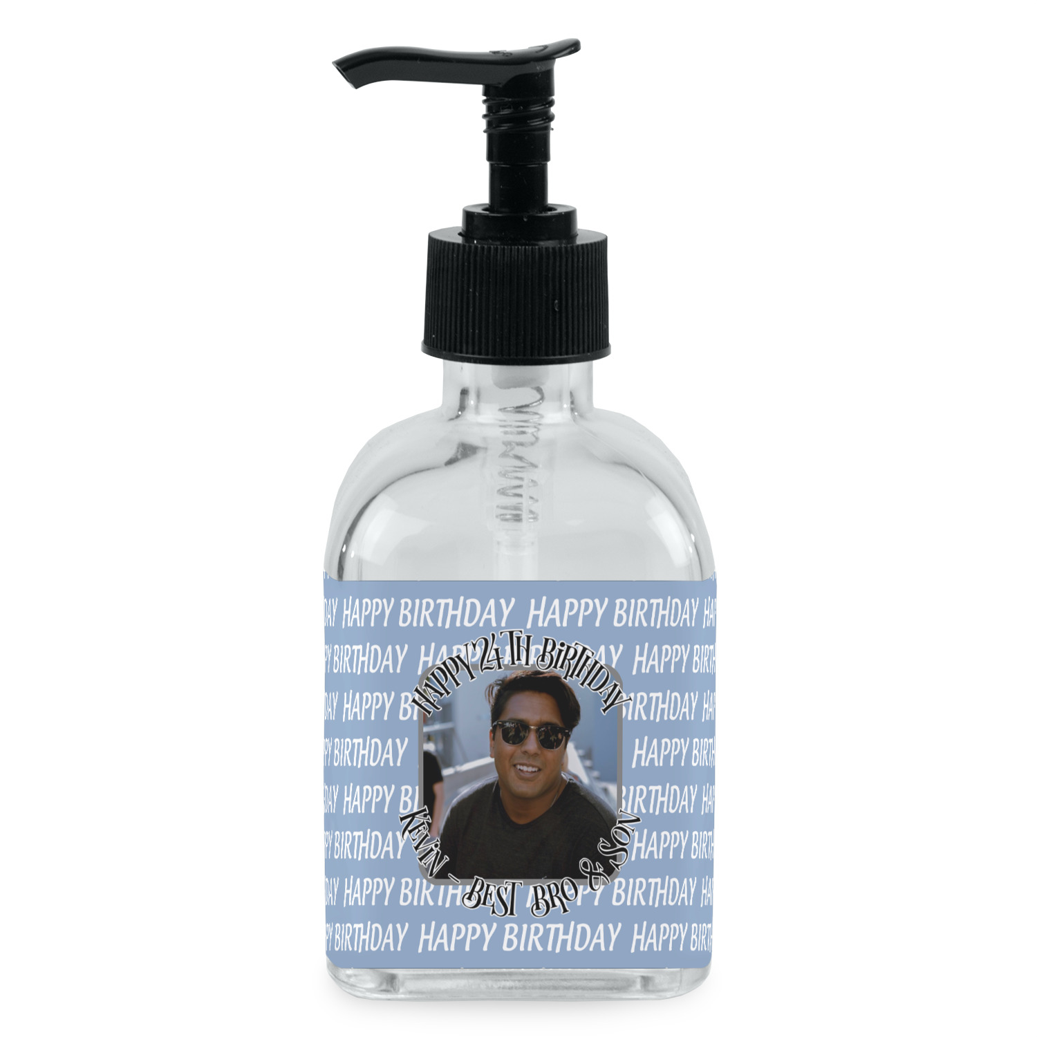 Crafted from a high-quality glass, these soap dispensers and lotion dispensers are durable and robust, while still looking elegant. They are sold with black pumps. Each soap dispenser pump measures at 6.5 by 2.25 inches. On these soap pumps, we display your customized design on a personalized vinyl adhesive on three sides. That way, you can judge how much liquid is in the bottles from the back.