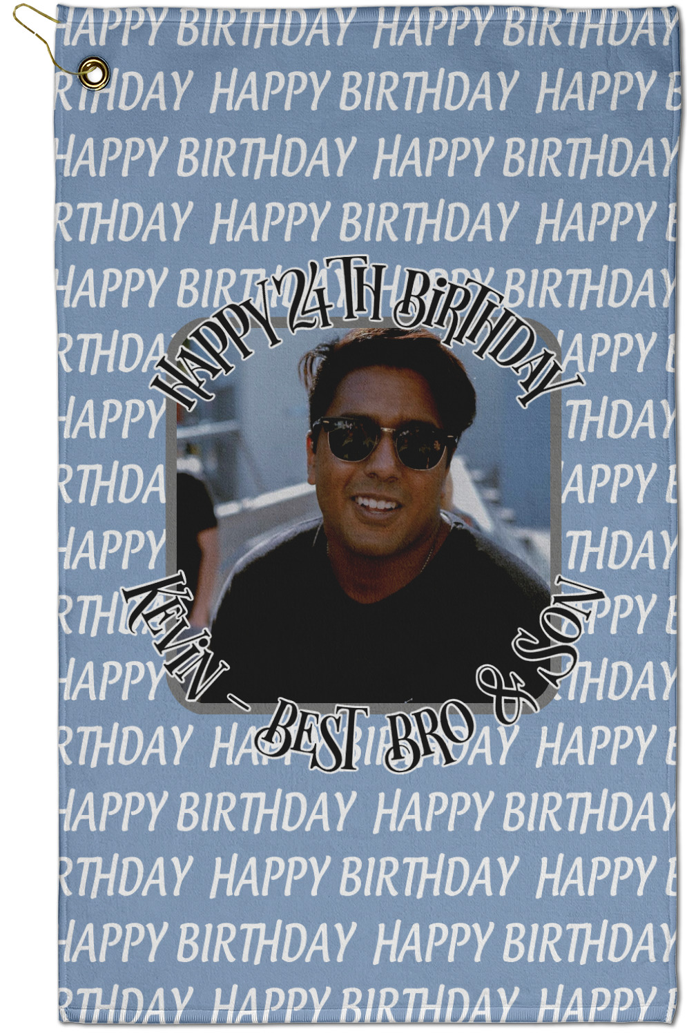 This design has a subtle background that says "Happy Birthday". You are able to upload your own picture of the birthday boy or girl right onto your design. The personalized text goes above and below your picture. This is a great design for pictures of you and the birthday boy/girl, so they can look at that cherished memory every day.