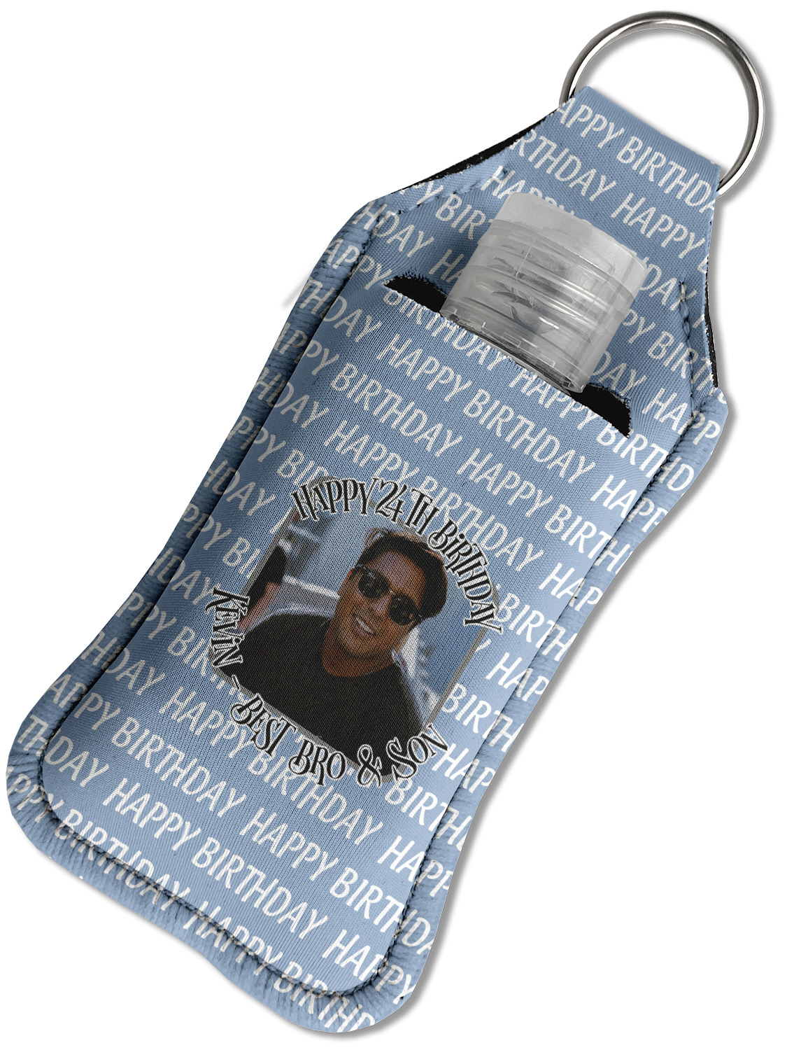 Each hand sanitizer holder comes with its own empty travel-sized, refillable hand sanitizer sure to fit snug in your customized sanitizer case! Our hand sanitizer cases are a durable, yet soft neoprene material sure to last any daily activities or travel agenda. Customize and personalize a hand sanitizer bottle holder with one of our two sizes - small (4.25" x 2.25") or large (5.5" x 2.5"). Each travel sanitizer holder comes with a keyring for attachment on bags, keys, or more!