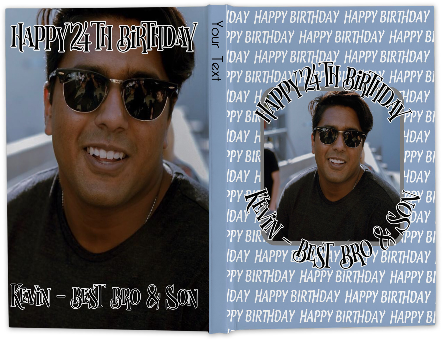 This design has a subtle background that says "Happy Birthday". You are able to upload your own picture of the birthday boy or girl right onto your design. The personalized text goes above and below your picture. This is a great design for pictures of you and the birthday boy/girl, so they can look at that cherished memory every day.