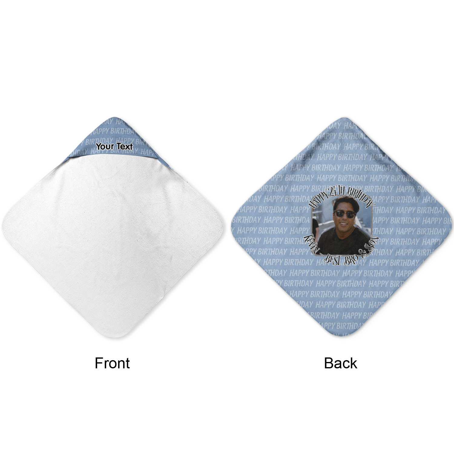 This baby towel is made with a plush microfiber velour and cotton terry. and thus will be soft and gentle against your newborn's skin, but also, very absorbent. Your customization is printed across the front & the hood, while the inside is a classy white.